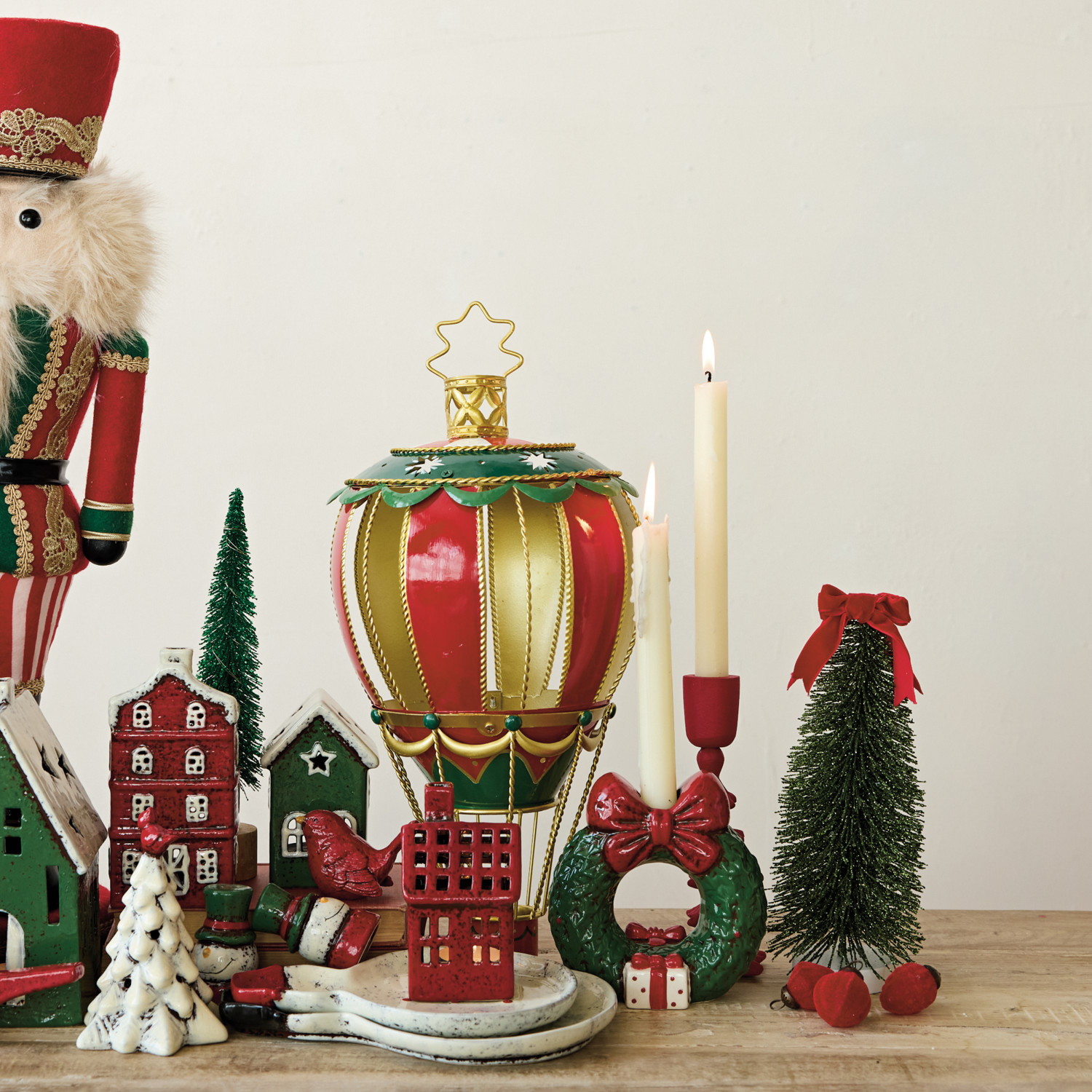 Hand-Painted Ceramic Wreath Shaped Taper Holder with Bow (Each One Will Vary)