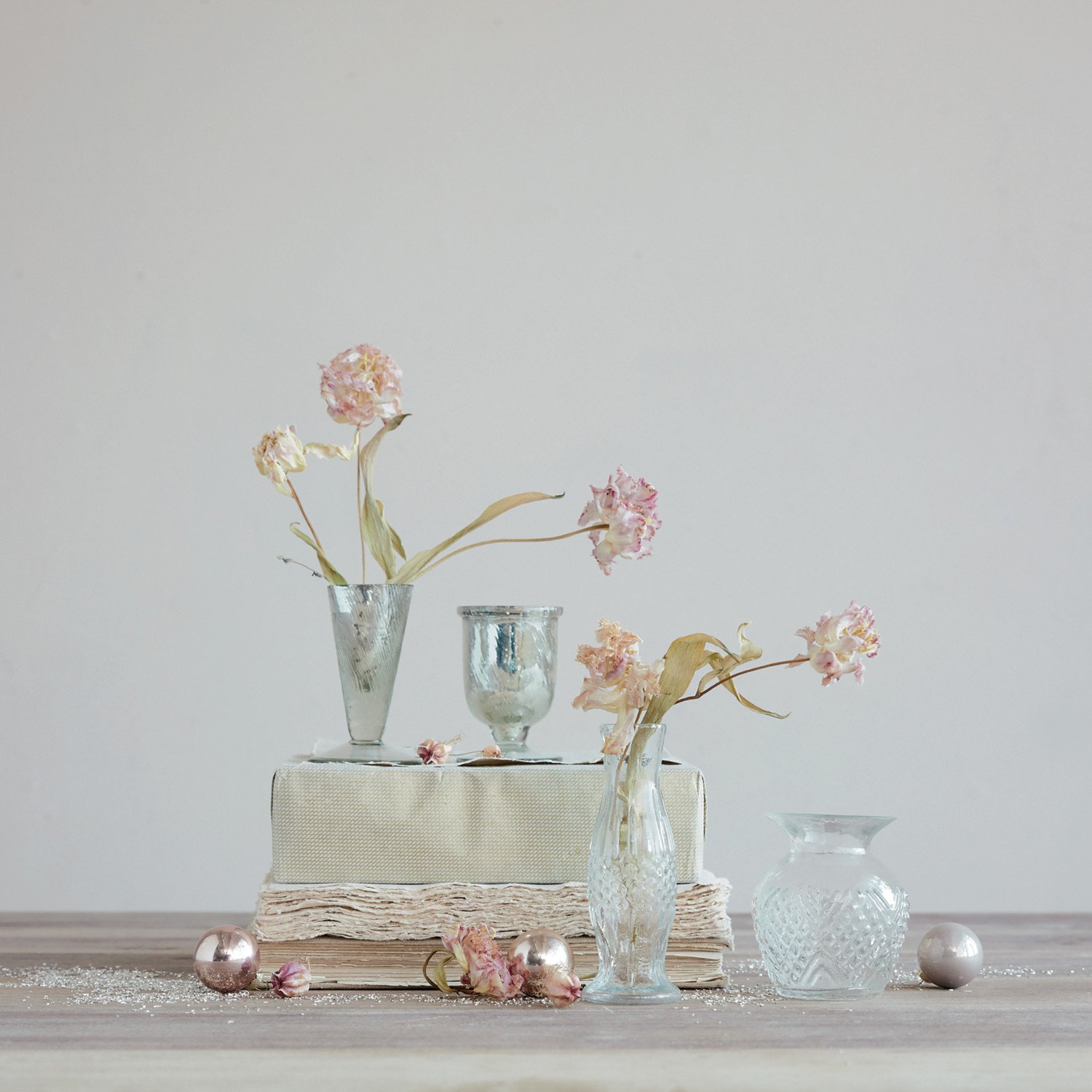 Mercury Glass Footed Vase, Antique Silver Finish, 2 Styles