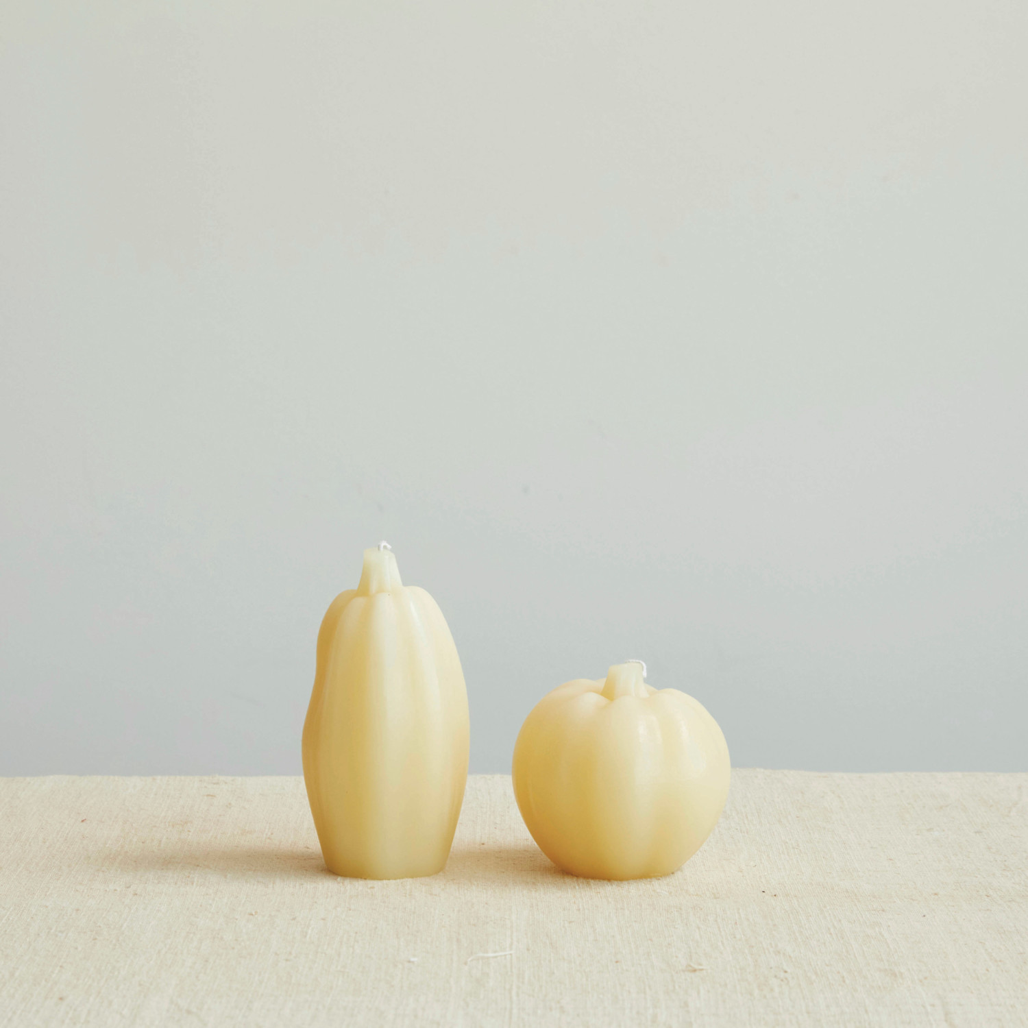 Catalog Name: 3" Round x 6"H Unscented Squash Shaped Candle, Cream Color (Approximate Burn Time 68 Hours)