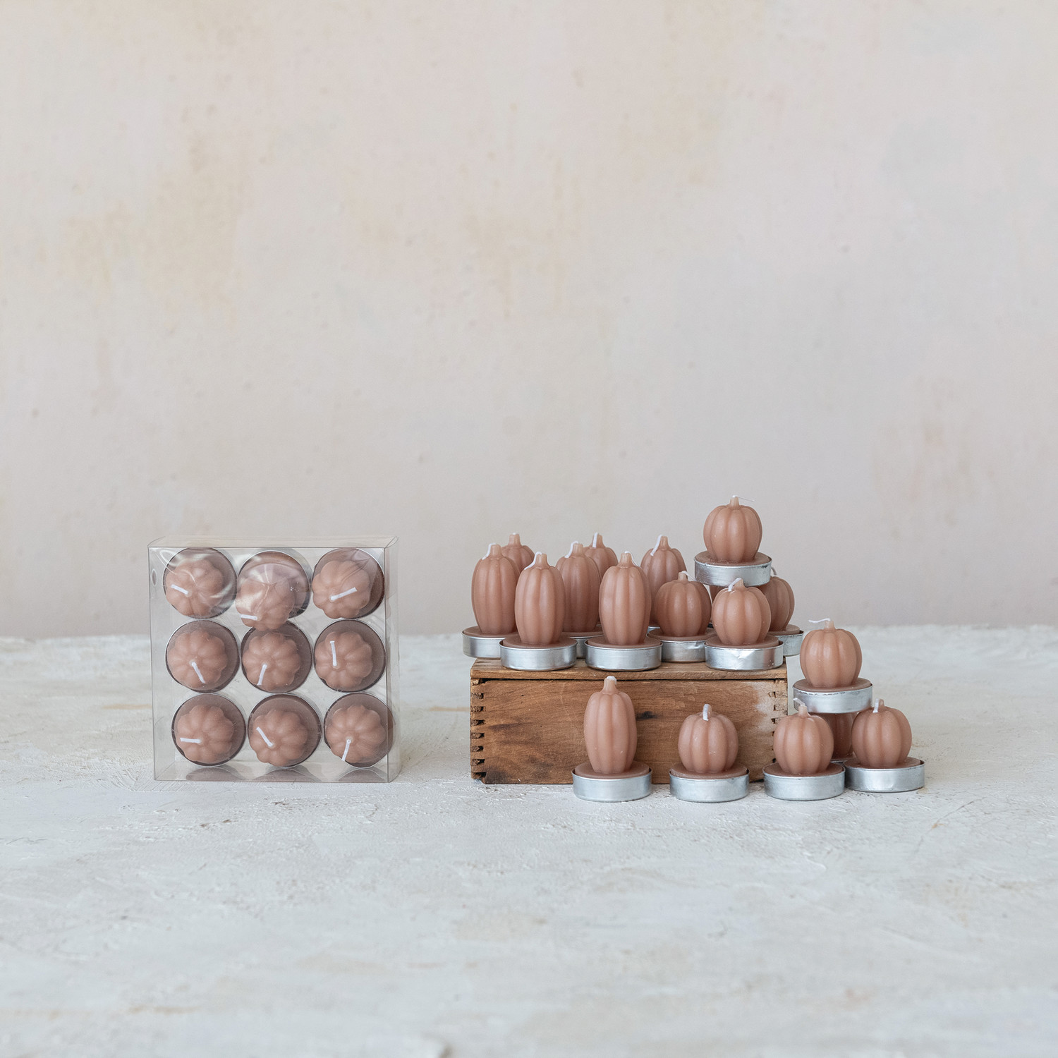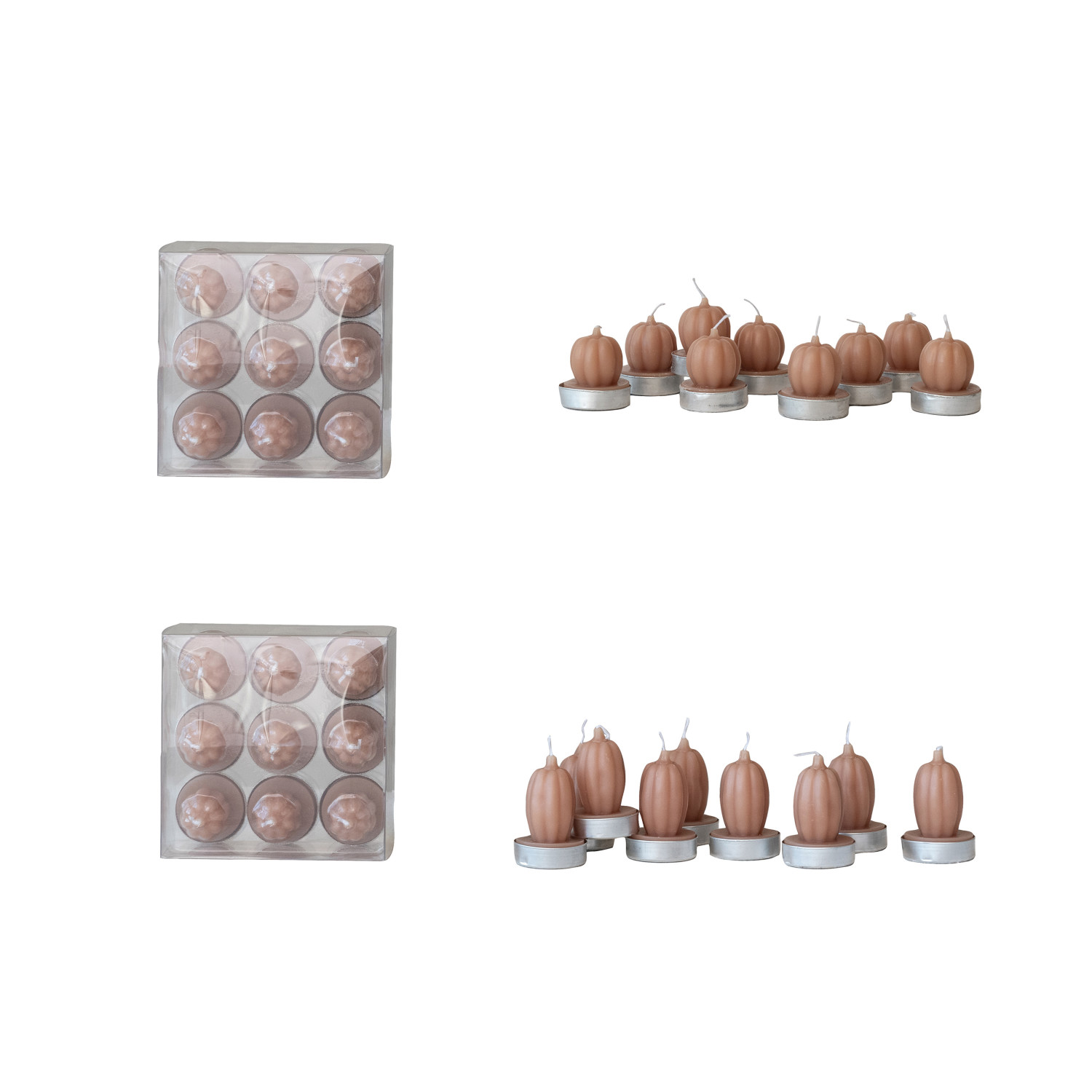 Unscented Pumpkin Shaped Tealights in Box, Set of 9, 2 Styles