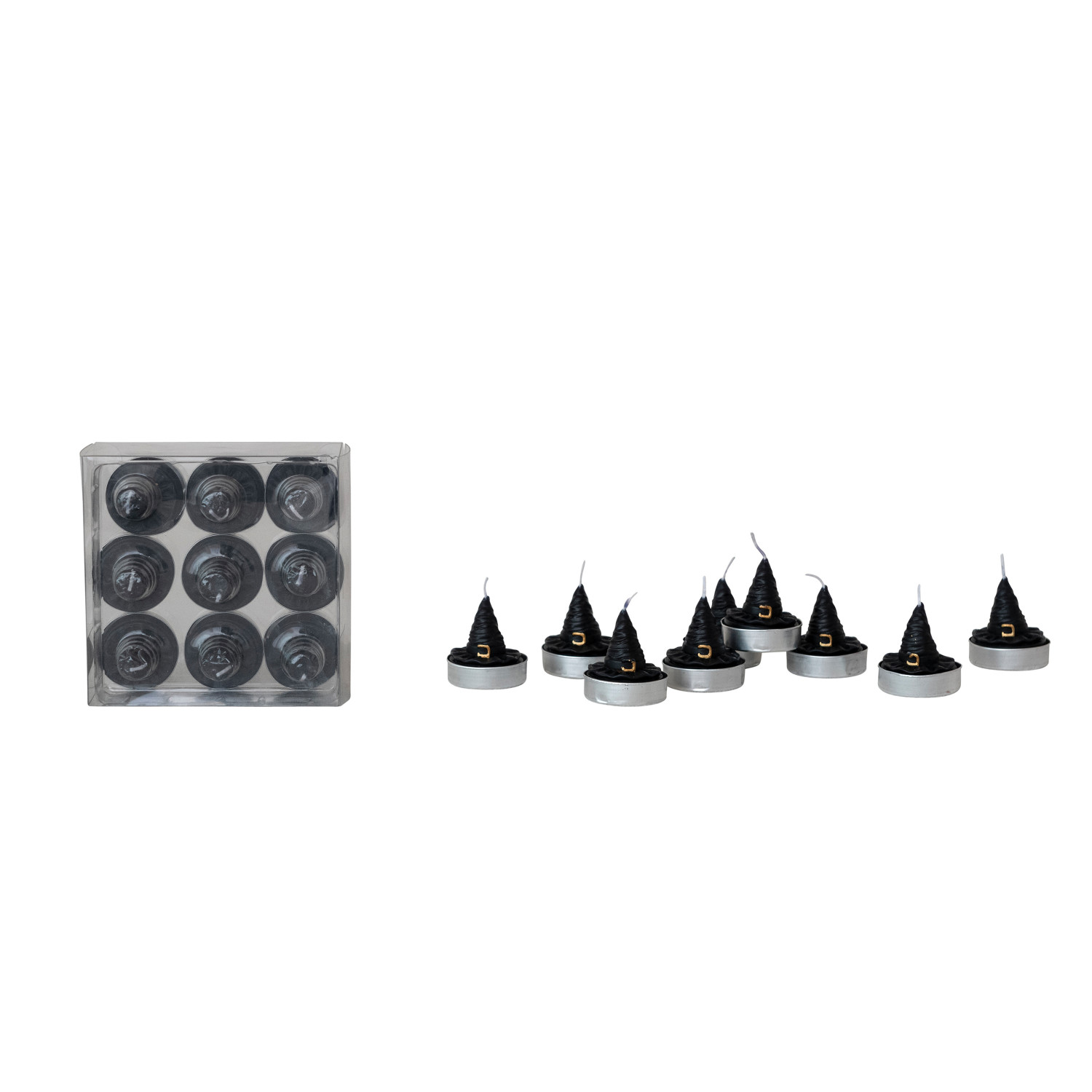 Unscented Witch's Hat Shaped Tealights in Box, Set of 9