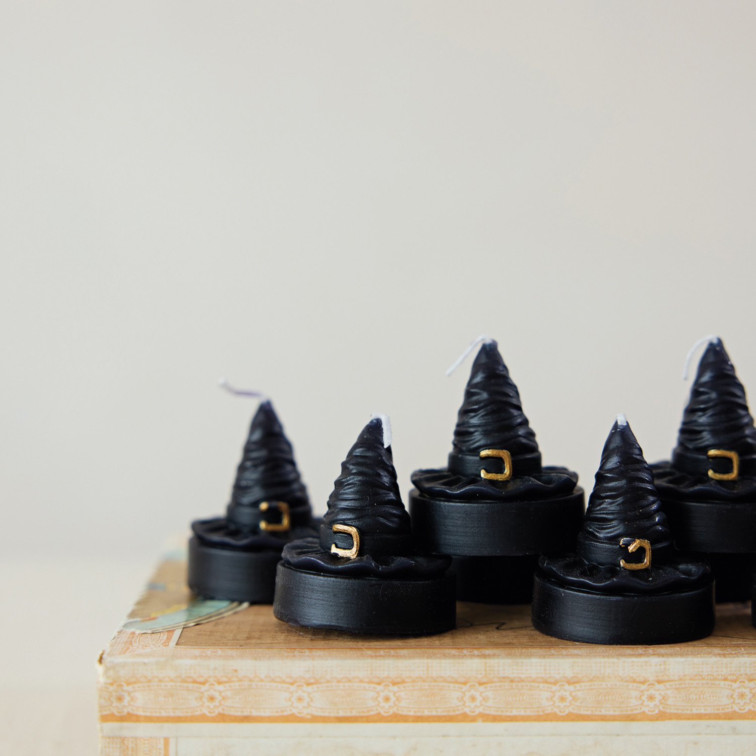 Unscented Witch's Hat Shaped Tealights in Box, Set of 9