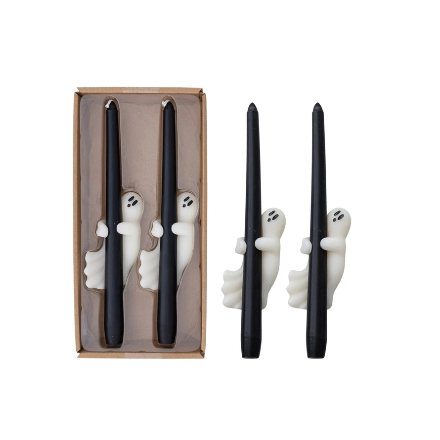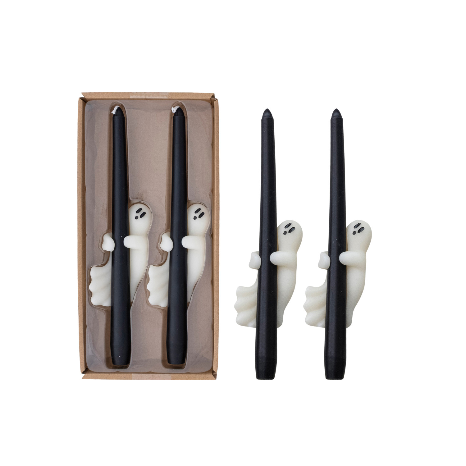 Unscented Taper Candles with Ghost in Box, Black & White, Set of 2 (Est. Burn Time 6 Hours)