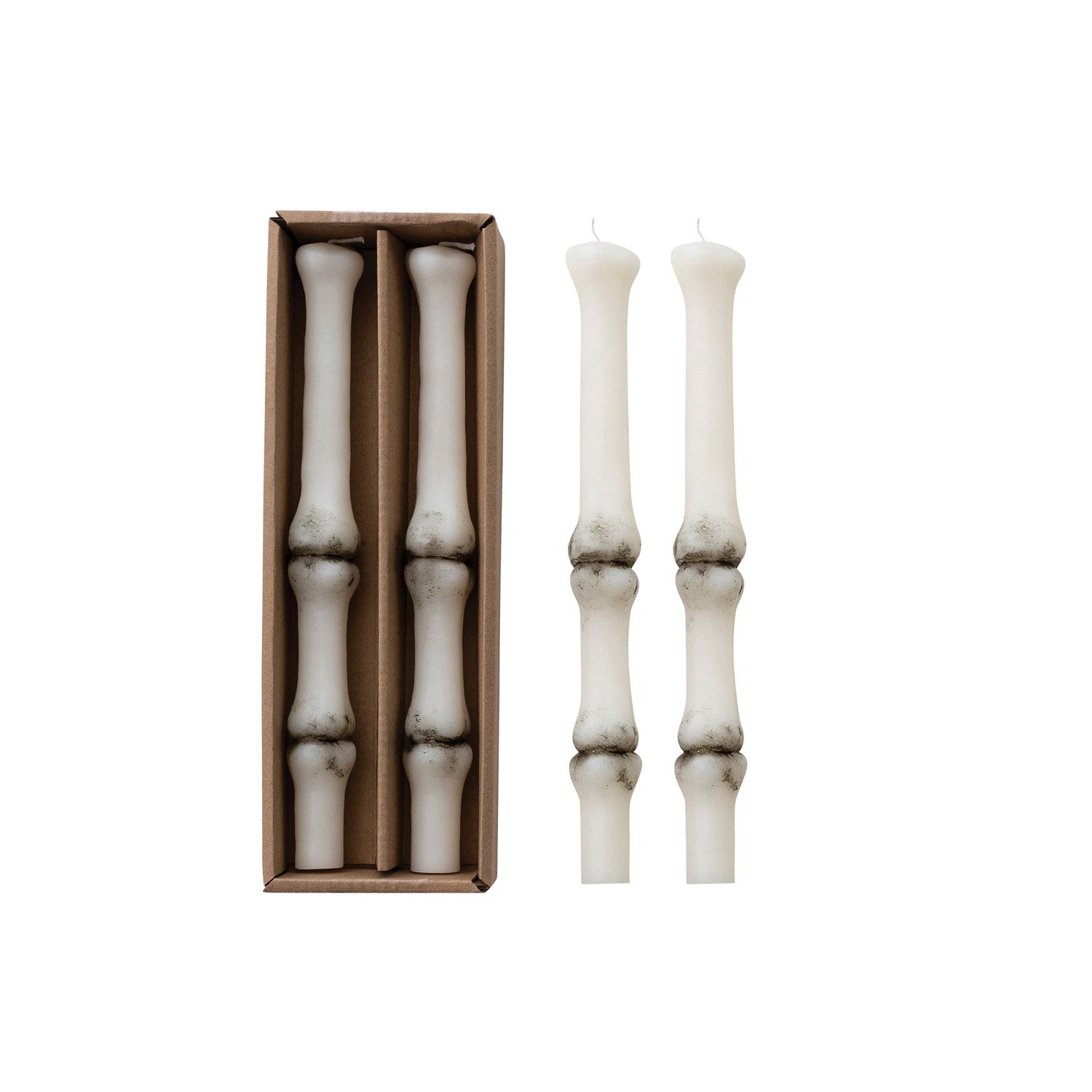 Catalog Name: 10"H Unscented Finger Bone Shaped Taper Candles in Box, White & Black, Set of 2 (Est. Burn Time 7 Hours)