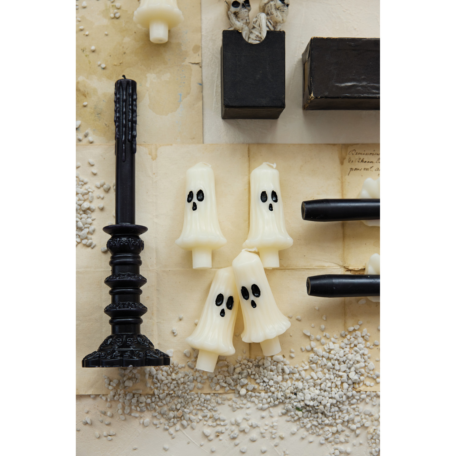 Unscented Ghost Shaped Bottle Taper Candles in Box, White & Black, Set of 4