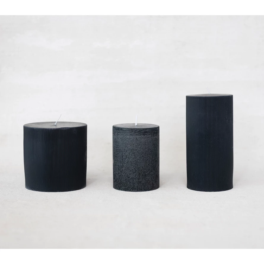 Unscented Pleated Pillar Candle, Noir Color