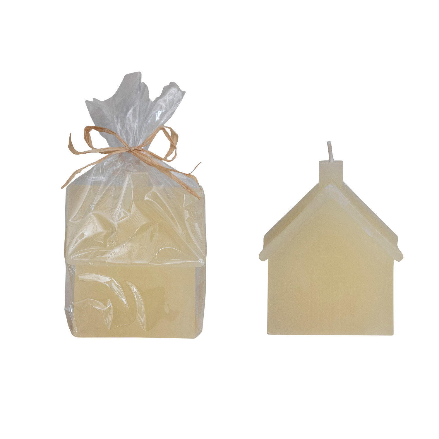 3" Square x 3-1/2"H Unscented House Shaped Candle, Cream Color