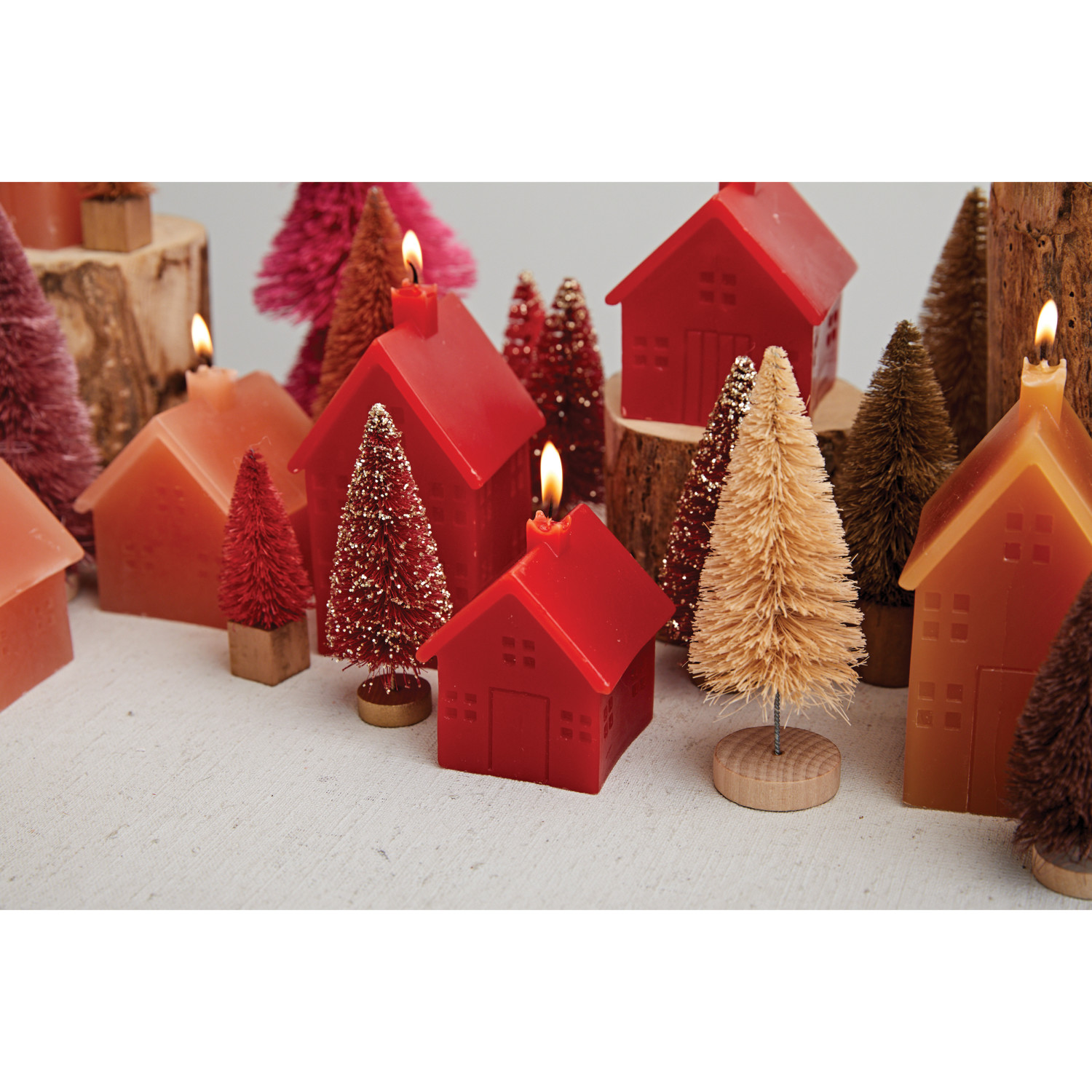 2-1/2" Square x 3"H Unscented House Shaped Candle, Red (Approximate Burn Time 24 Hours)