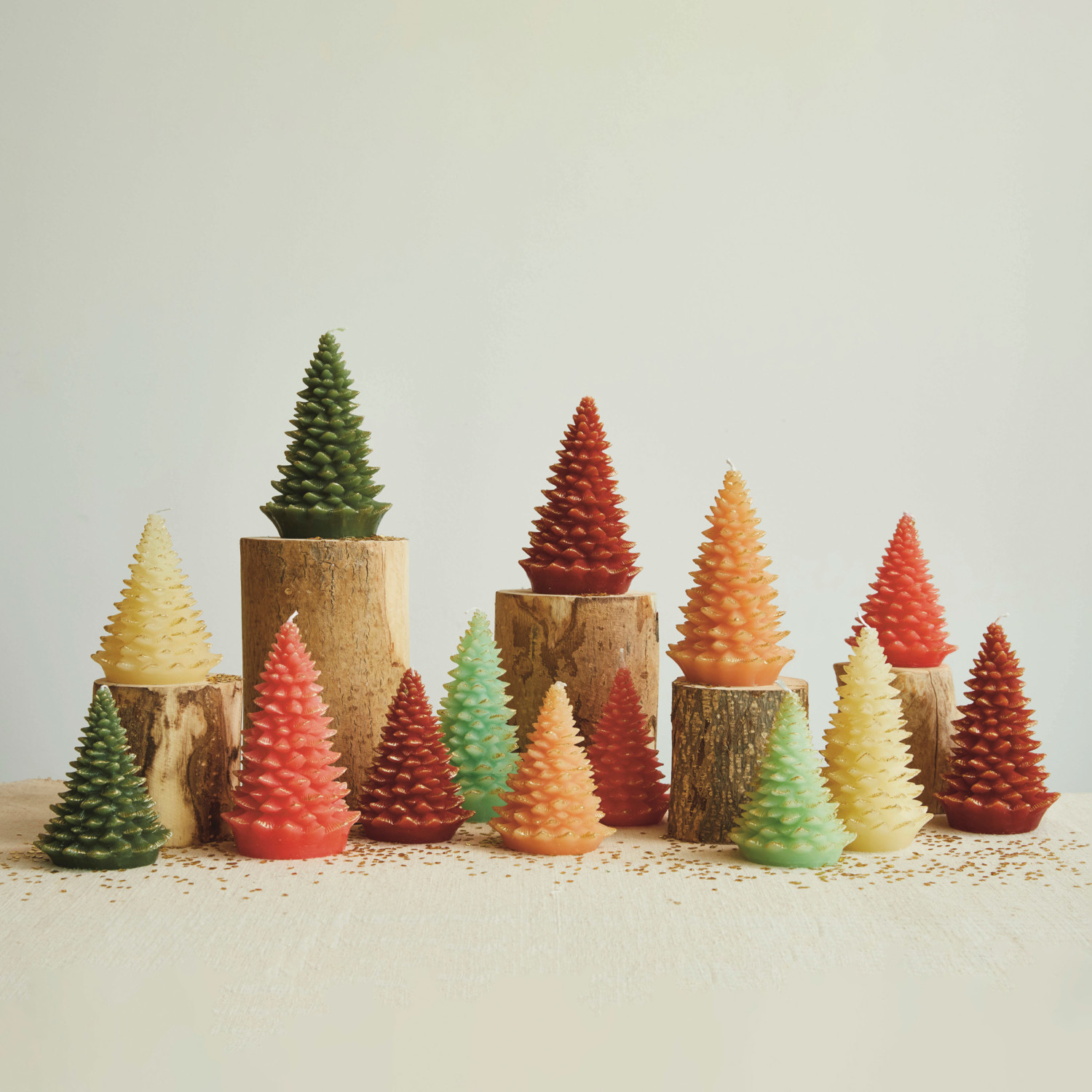 Add a sophisticated touch to the holiday decor with the holiday tree-shaped candle. This unscented candle, shaped like a festive tree and finished with gold tips, comes in mint and a variety of colors to complement any room or occasion. With an approximate burn time of 28 hours, it's designed to provide a long-lasting, tranquil flame. The combination of high-quality wax and a cotton wick ensures a clean burn, while its size of 3.75 inches round by 5 inches high makes it a versatile choice for holiday centerpieces or as a thoughtful gift. From adding a warm glow to gatherings to creating a calming atmosphere, this decorative candle adds a touch of magic to any space. A festive holiday tree-shaped candle with elegant gold tips, available in mint and other colors to brighten any seasonal display. Unscented candle for a clean and pure burn. Approximate burn time of 28 hours.