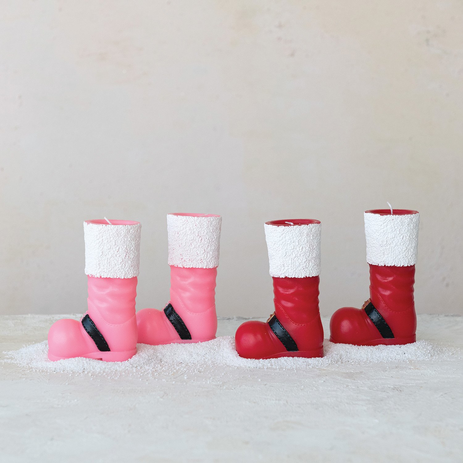 Unscented Santa Boot Shaped Candle, Red, White & Black