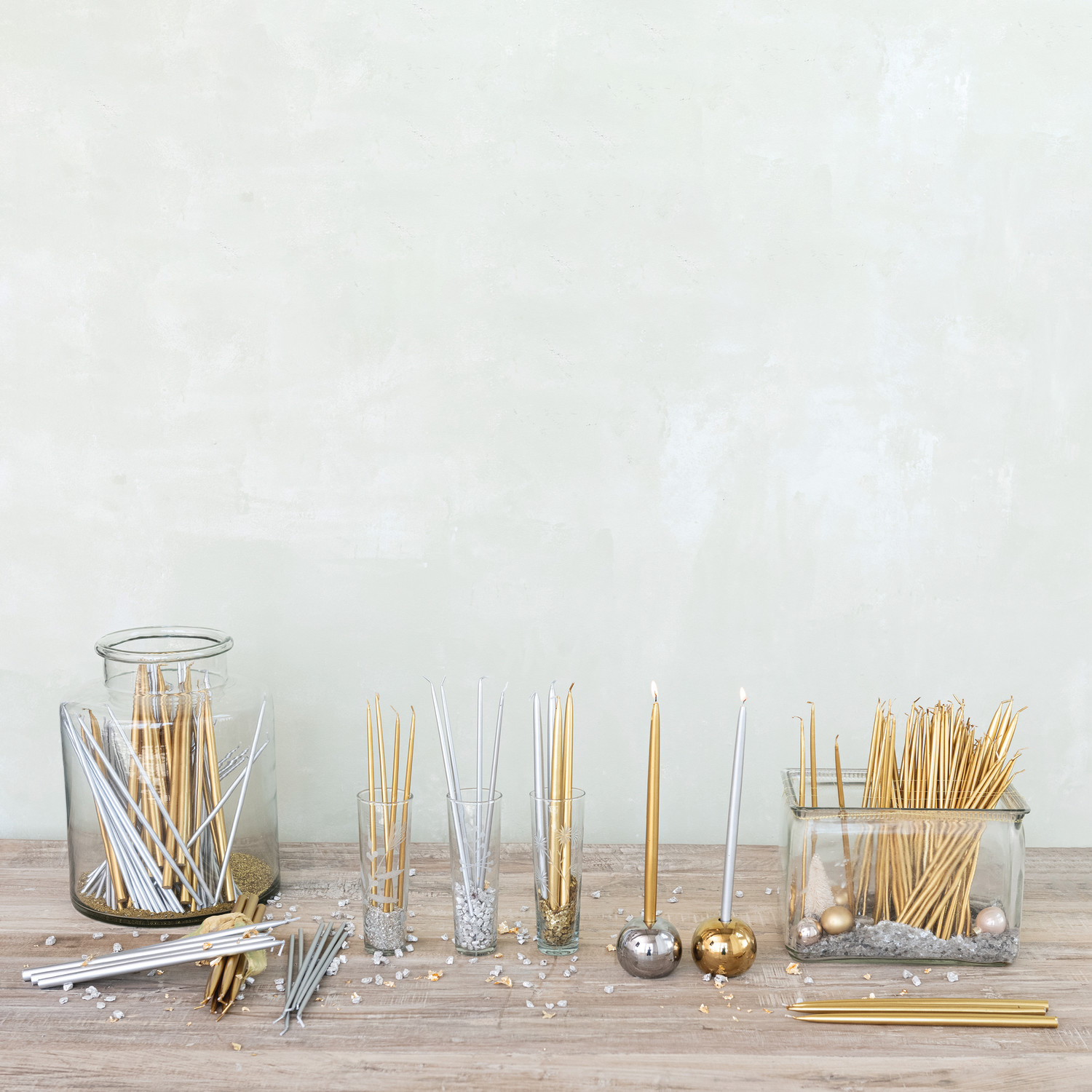 Catalog Name: Approx. 1/4" Round x 10"H Unscented Thin Taper Candles in Box, Silver Color, Set of 36 (Est. Burn Time 1-1/2 Hours)