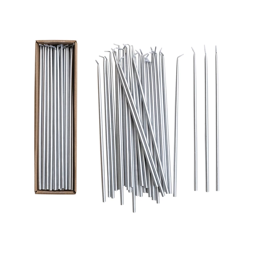 Catalog Name: Approx. 1/4" Round x 10"H Unscented Thin Taper Candles in Box, Silver Color, Set of 36 (Est. Burn Time 1-1/2 Hours)