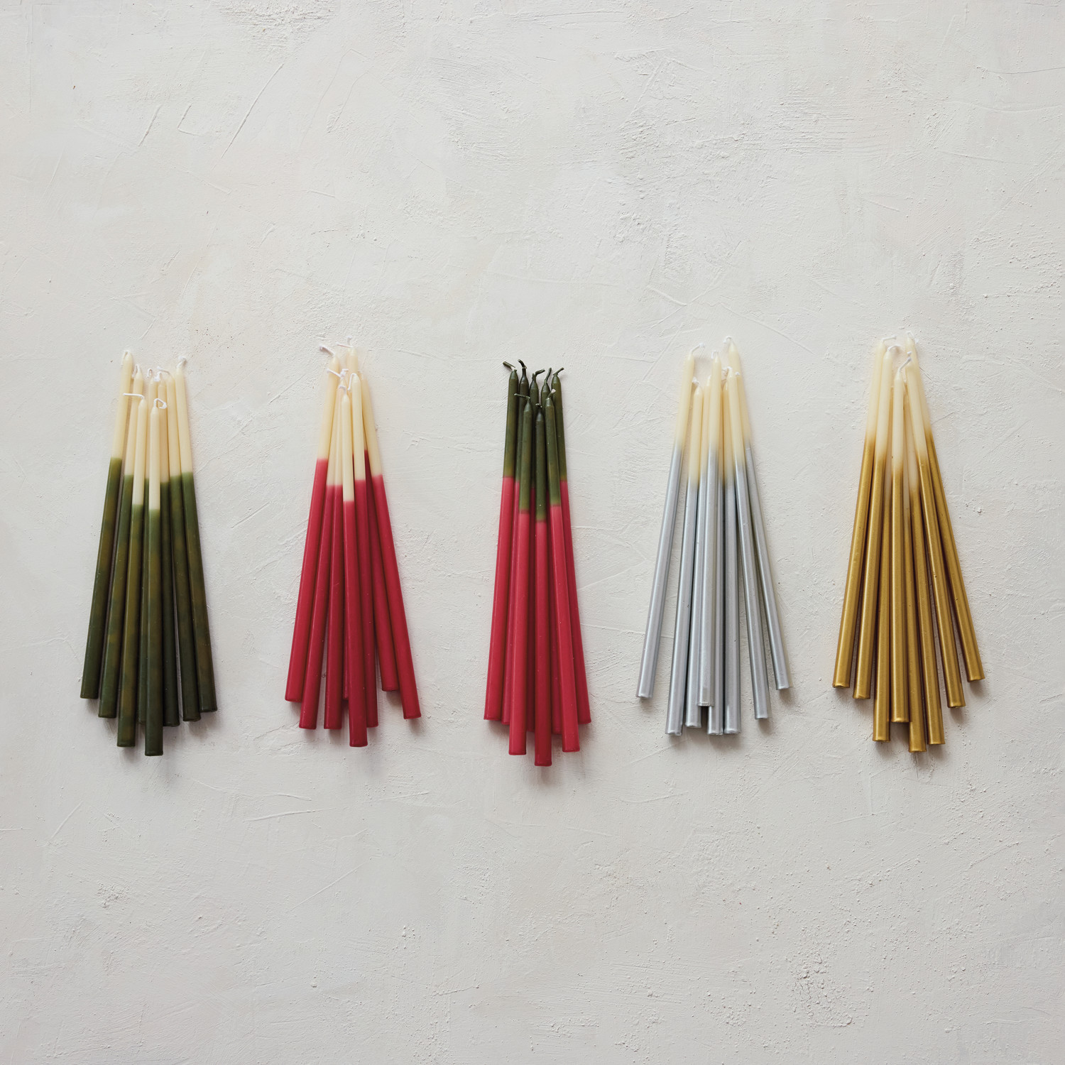 Catalog Name: Approx. 1/2" Round x 10"H Unscented Two-Tone Thin Taper Candles in Box, Cream & Gold Color, Set of 24 (Est. Burn Time 3-1/2 Hours)
