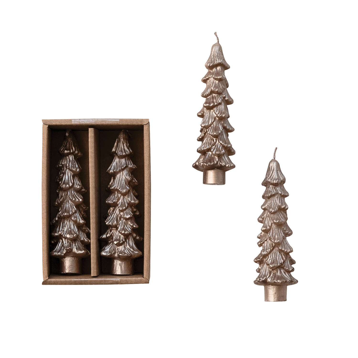 Unscented Tree Shaped Taper Candles in Box, Champagne Color, Set of 2