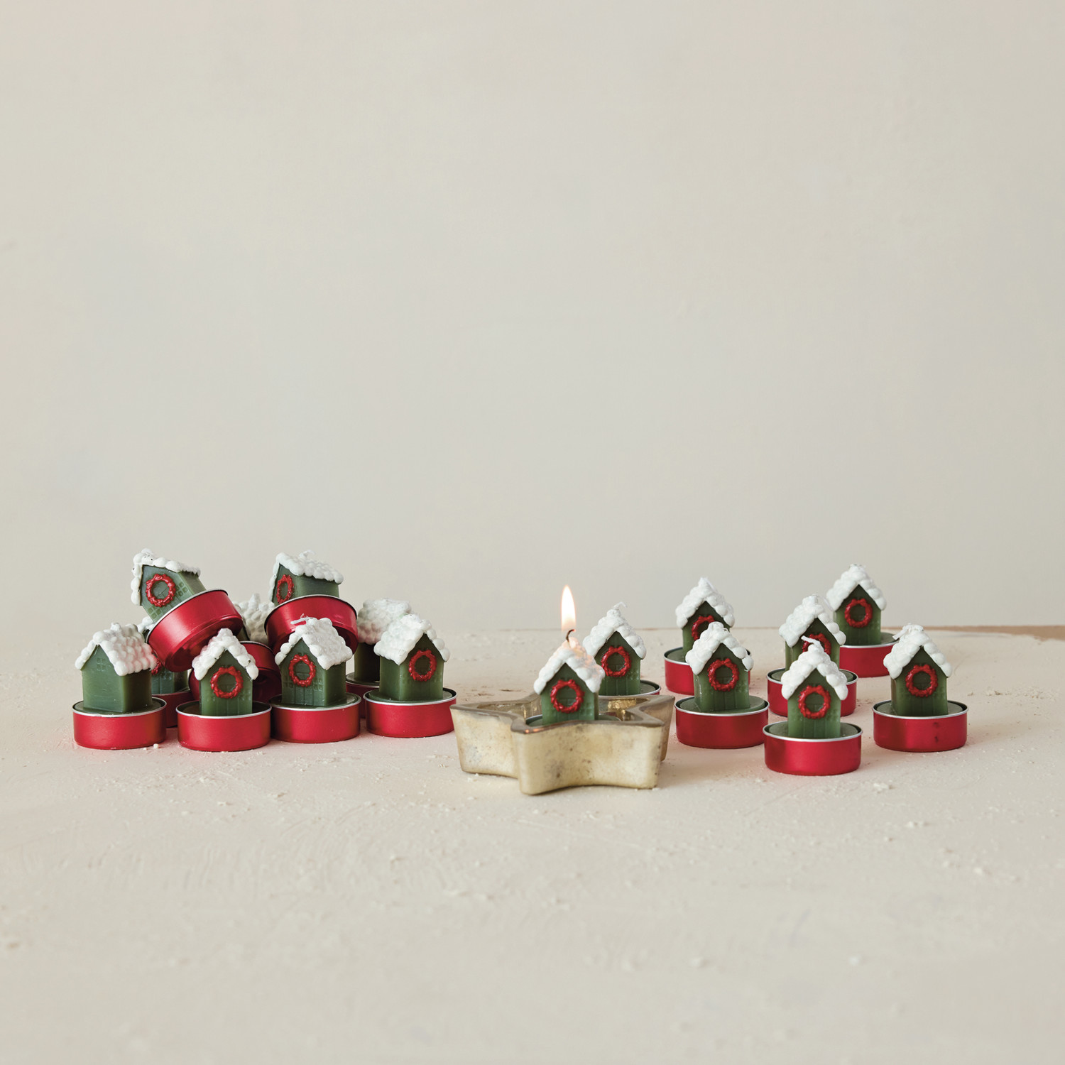 Unscented House with Snow & Wreath Shaped Tealights in Box, Set of 9