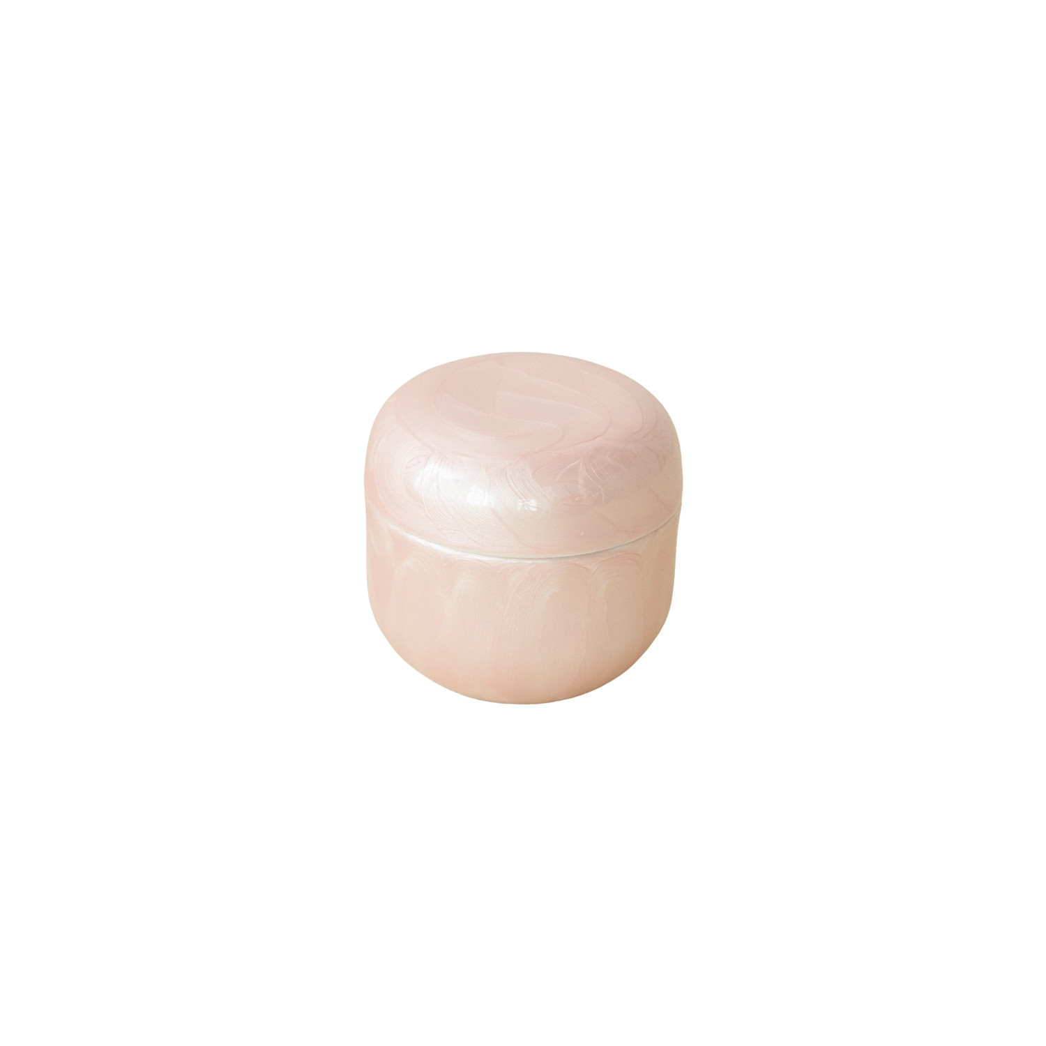 9.5 oz. Enameled Metal Winter Berry Scented Jar Candle with Lid, Pearlized Finish, Pink