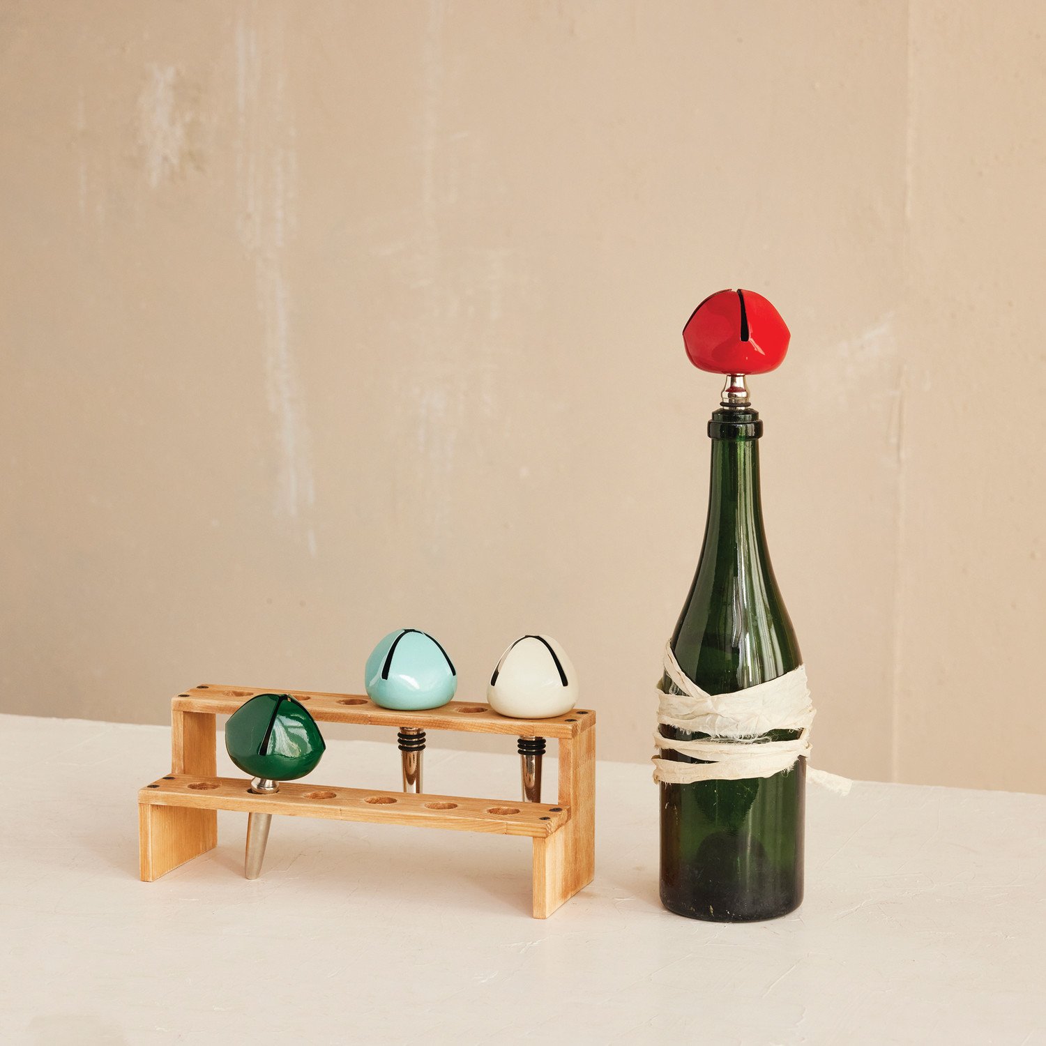 Wood Bottle Stopper Display with 12 Holes, Natural