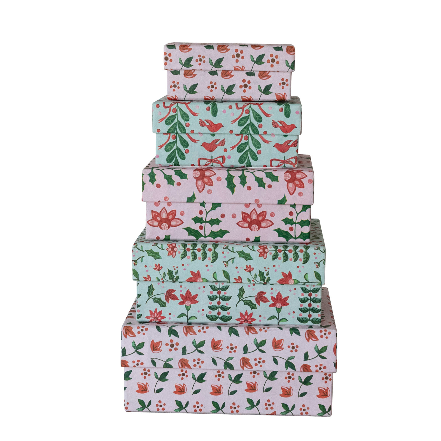 Handmade Printed Recycled Paper Gift Boxes with Botanical Patterns, Set of 5 ©