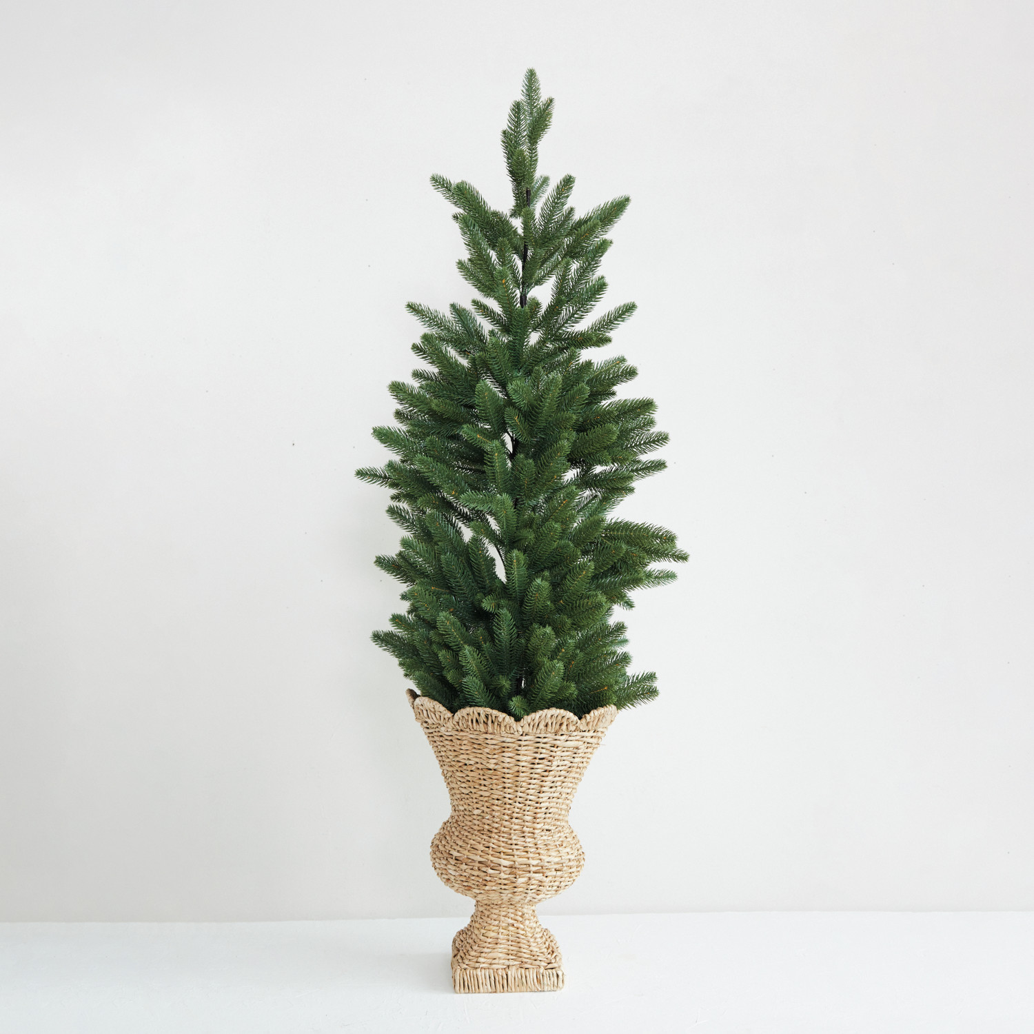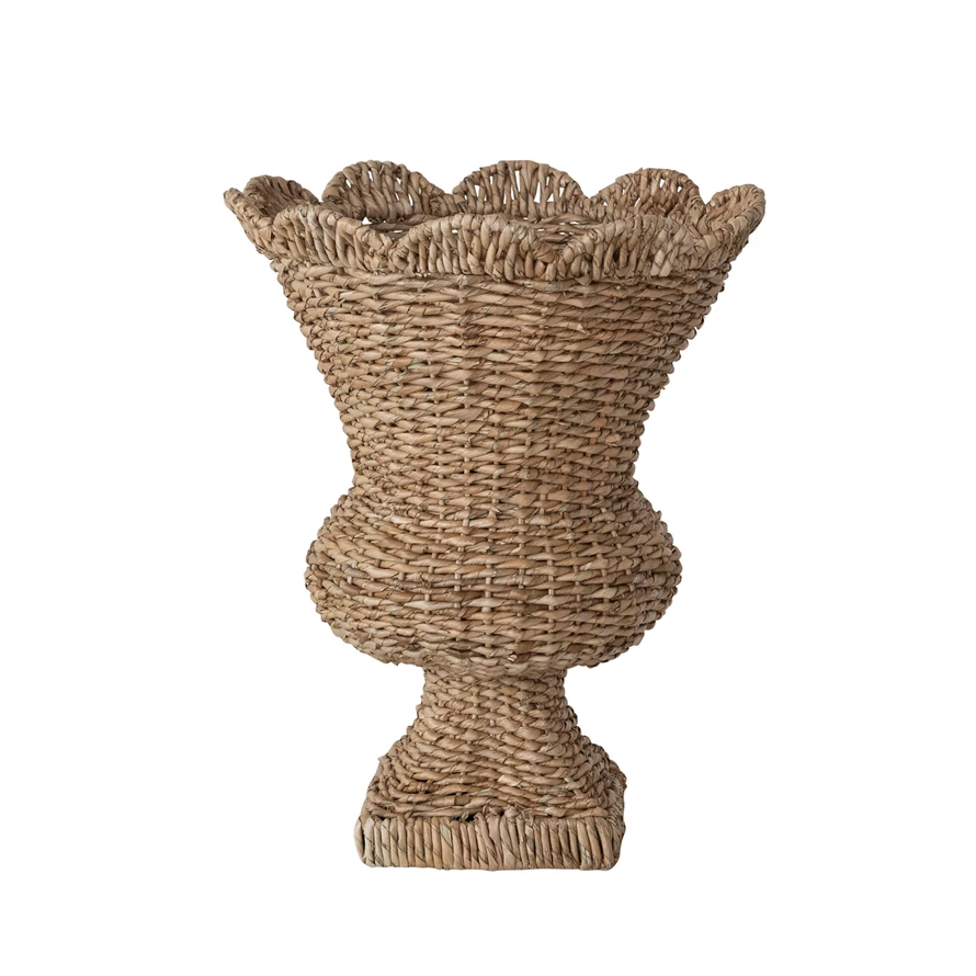 Catalog Name: 13" Round x 16"H Hand-Woven Rattan Scalloped Urn, Natural