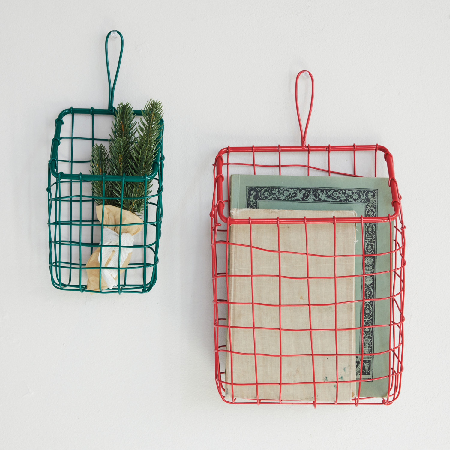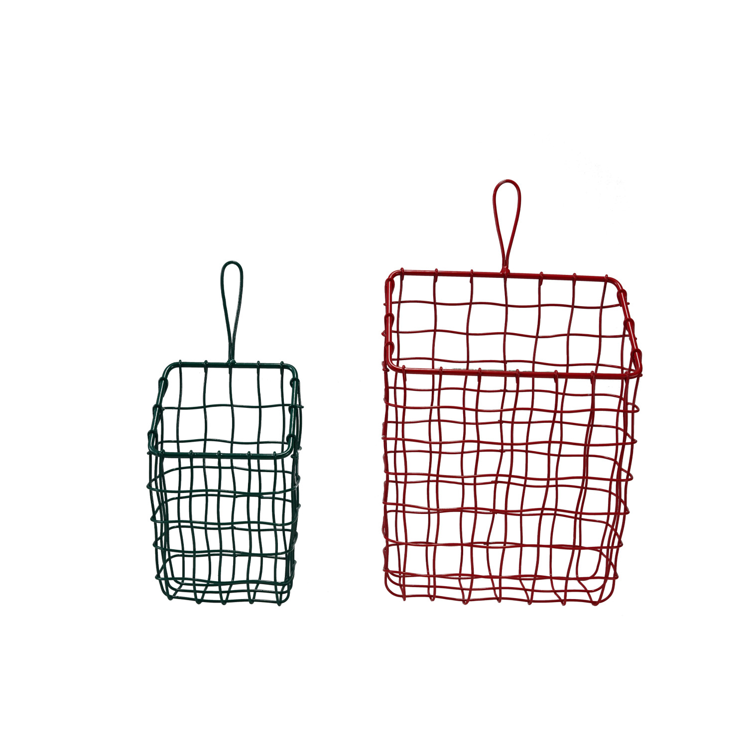 Enameled Metal Wire Wall Baskets, Red & Green, Set of 2
