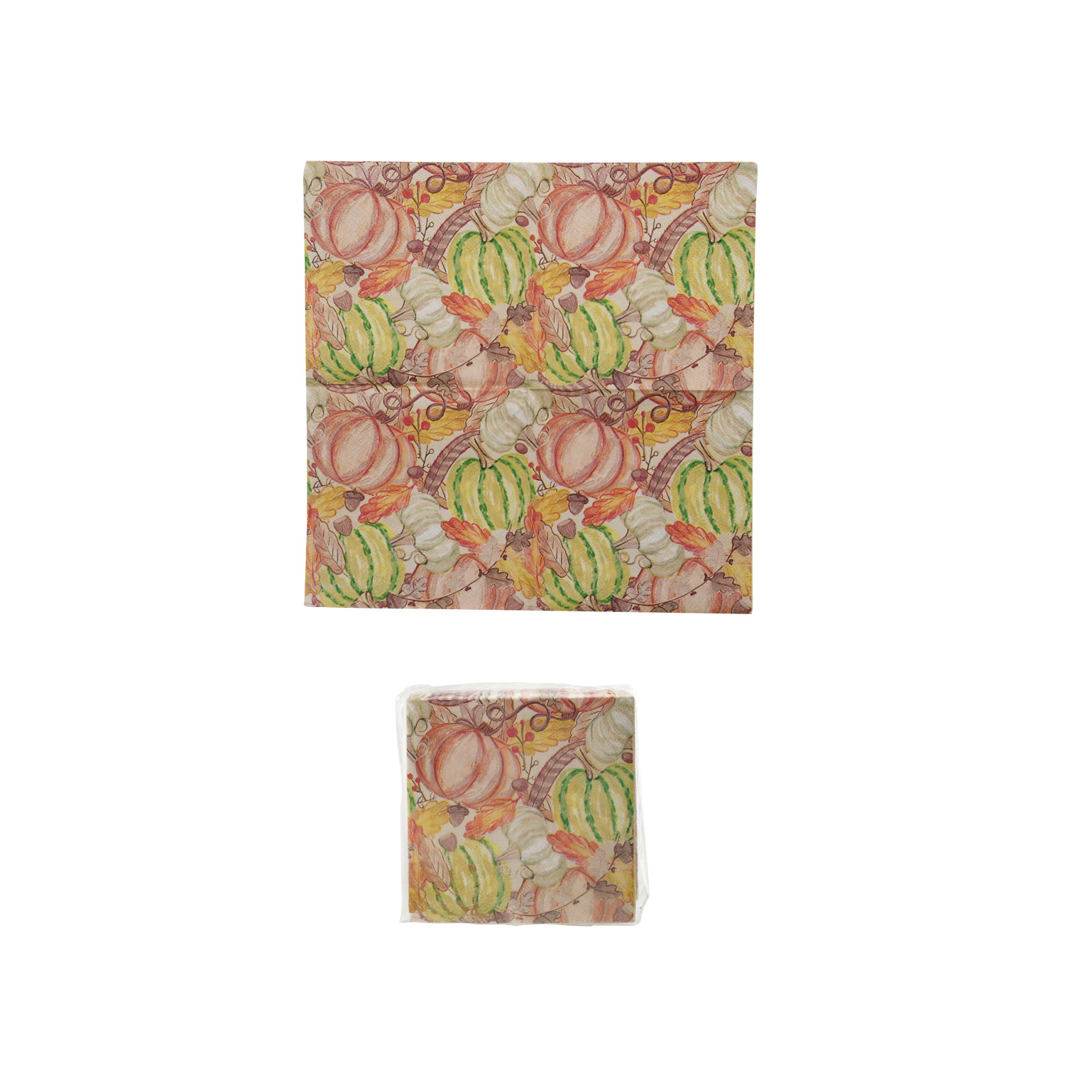 Catalog Name: 4" Square Paper Cocktail Napkins w/ Pumpkins, Leaves & Acorns, Multi Color (Contains 50 Folded Pieces) ©
