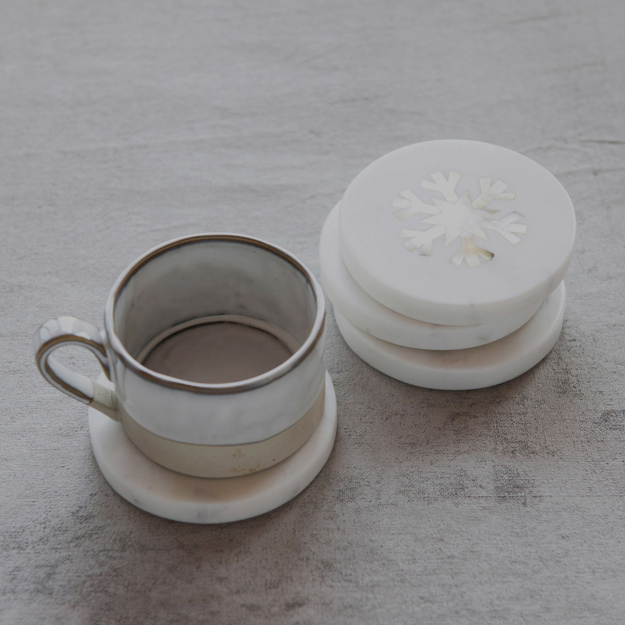 Marble Coasters with Snowflake Inlay, Set of 4