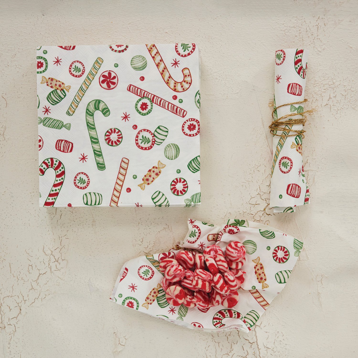 Catalog Name: 6-1/2" Square Paper Napkins w/ Holiday Candy Pattern, Multi Color (Contains 50 Folded Pieces) ©