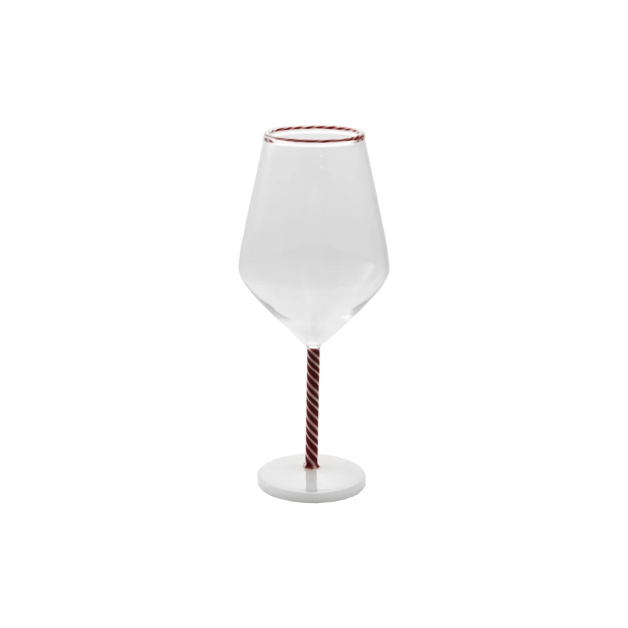 12 oz. Stemmed Wine Glass with Striped Rim & Stem, Red & White