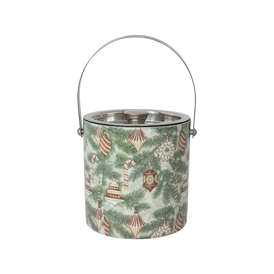 Catalog Name: 6" Round x 6-1/2"H 1-1/2 Quart Enameled Stainless Steel Ice Bucket w/ Holiday Pattern, Multi Color ©