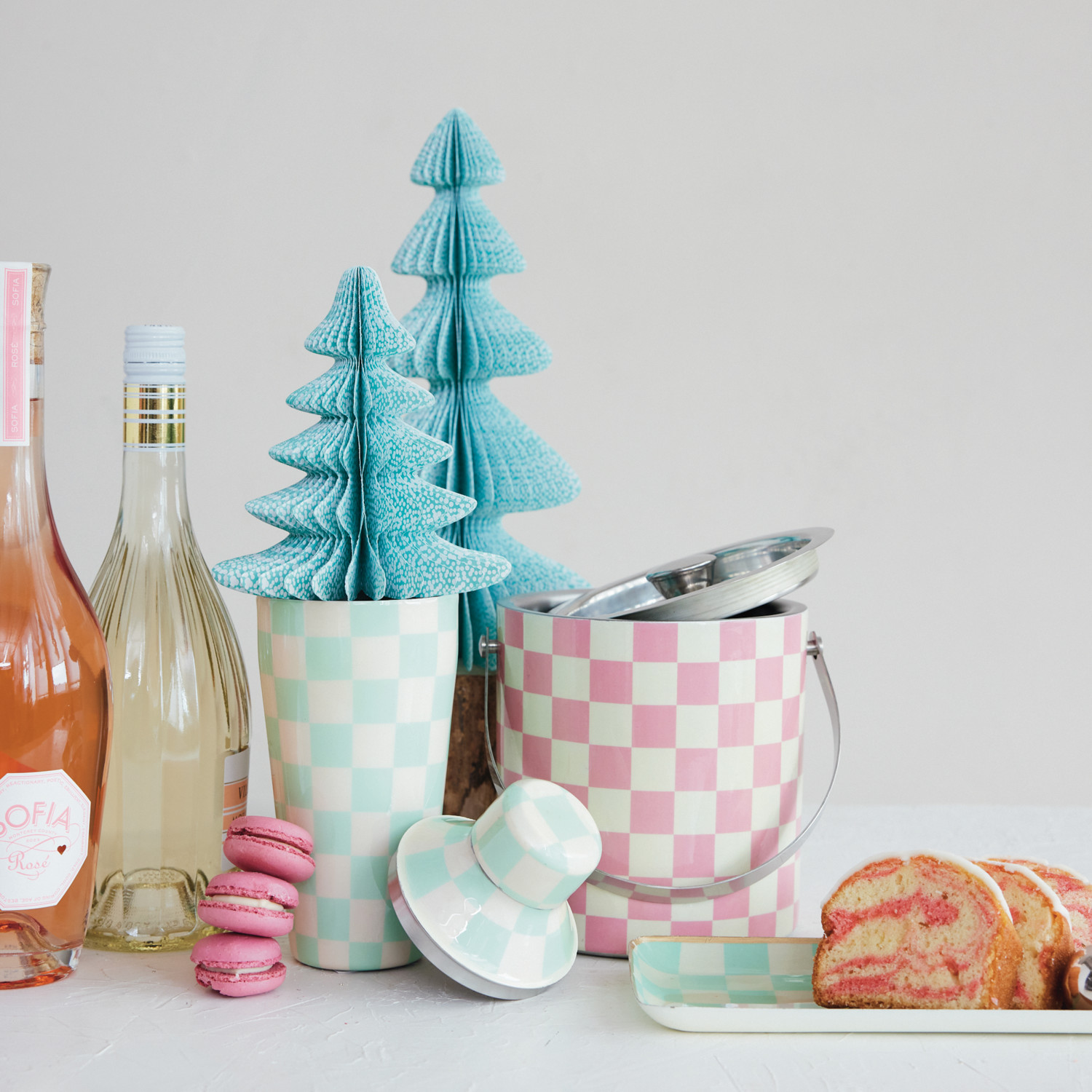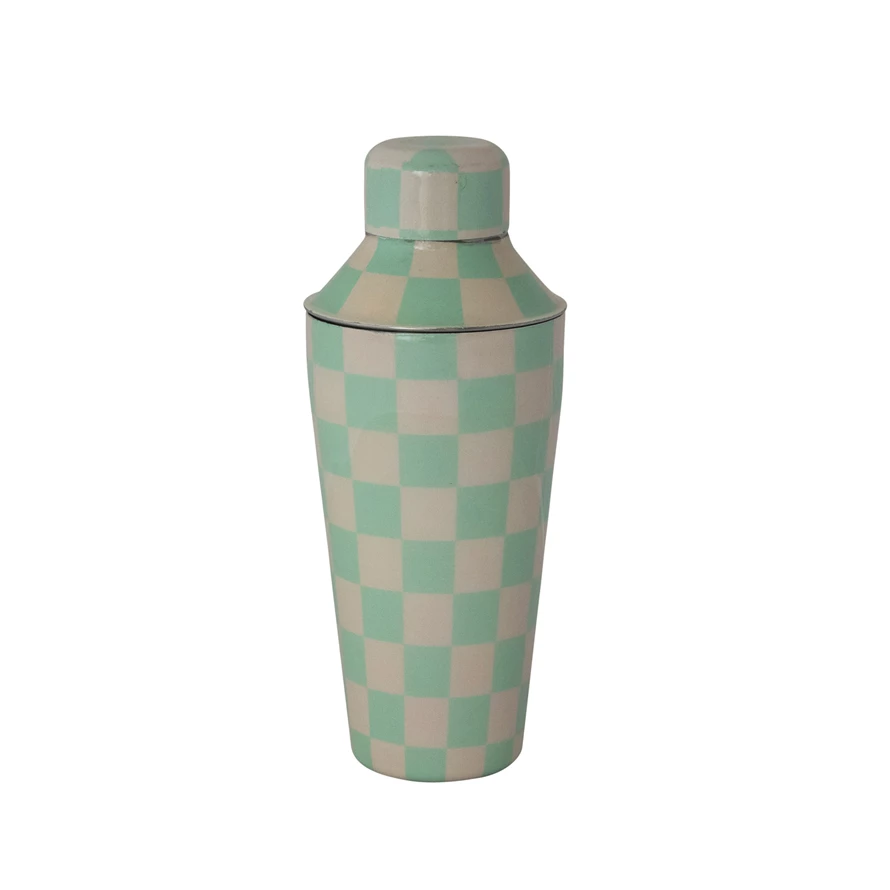22 oz. Enameled Stainless Steel Cocktail Shaker with Check Pattern, Mint & Ivory Color