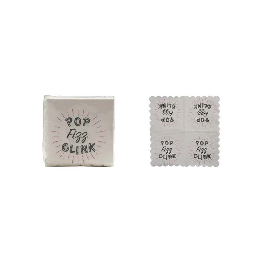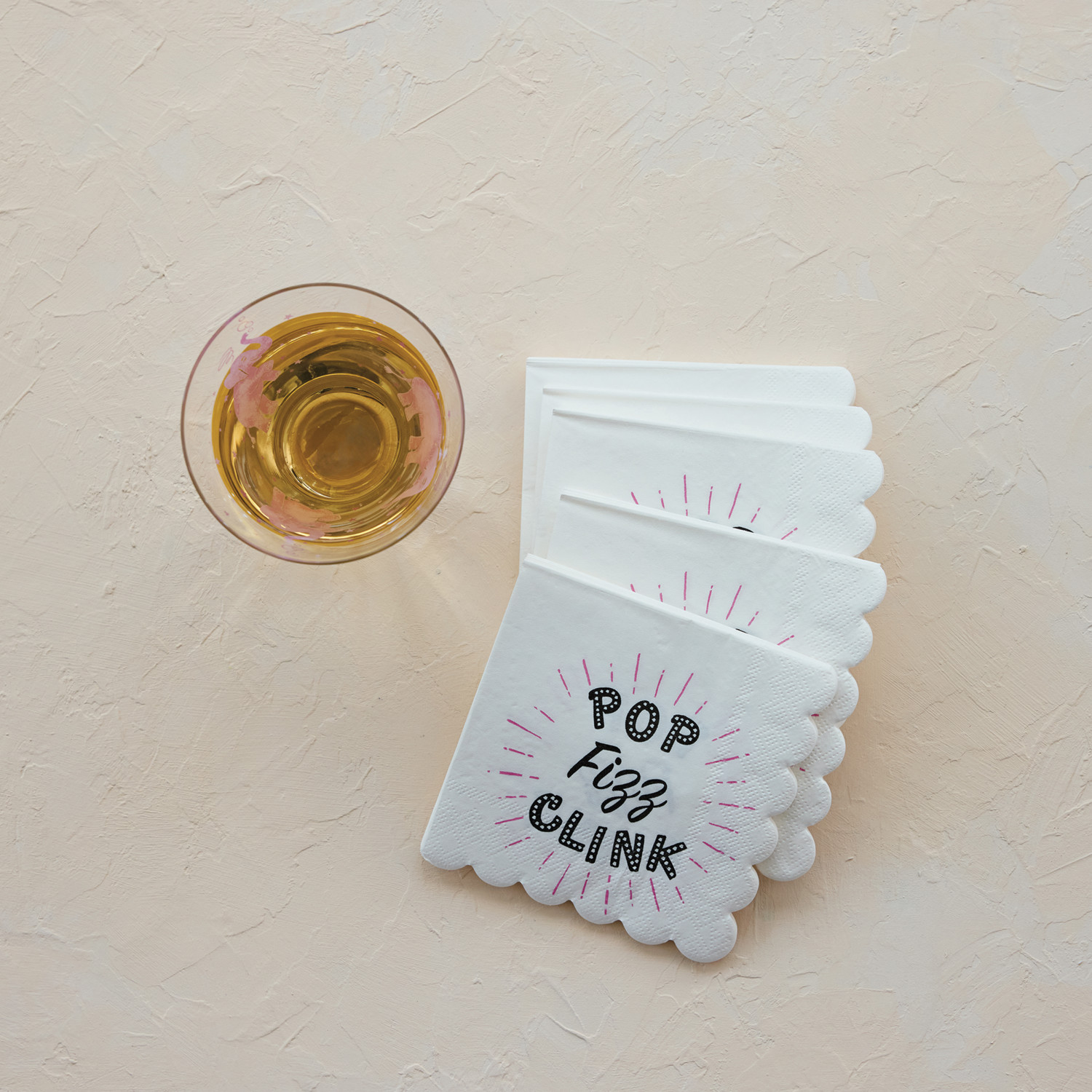 Paper Scalloped Napkins "Pop Fizz Clink" (Contains 50 Folded Pieces) ©