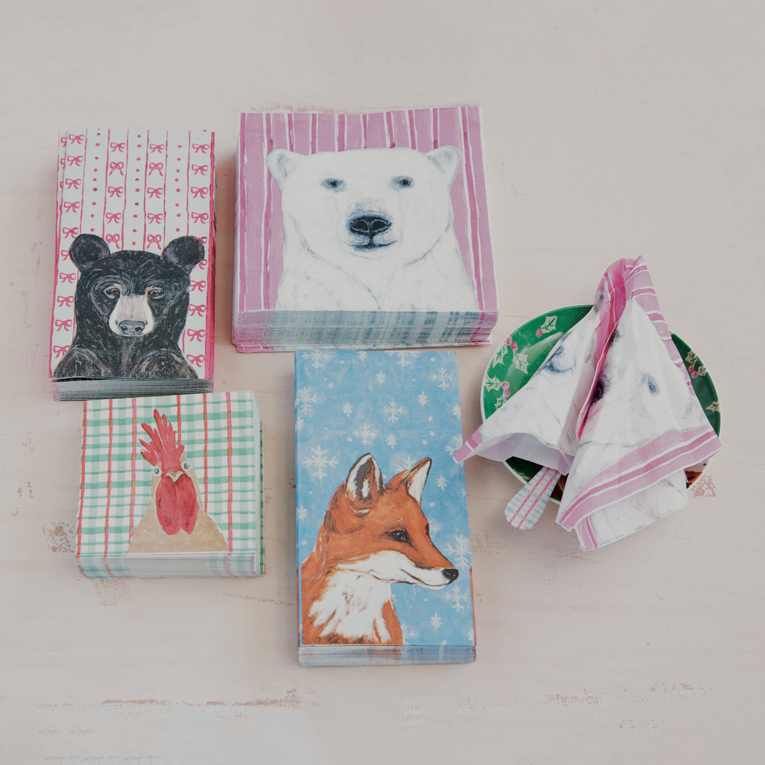 Catalog Name: 7-1/2"L x 4"W Paper Napkins w/ Holiday Pattern & Bear, Multi Color (Contains 20 Folded Pieces) ©