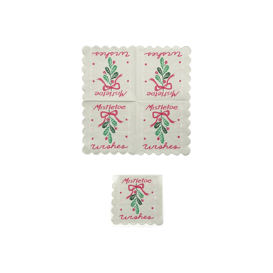 Paper Scalloped Napkins "Mistletoe Wishes" (Contains 50 Folded Pieces) ©