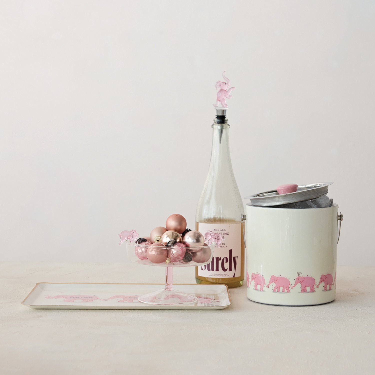 Zinc Alloy Bottle Stopper with Hand-Blown Glass Pink Elephant