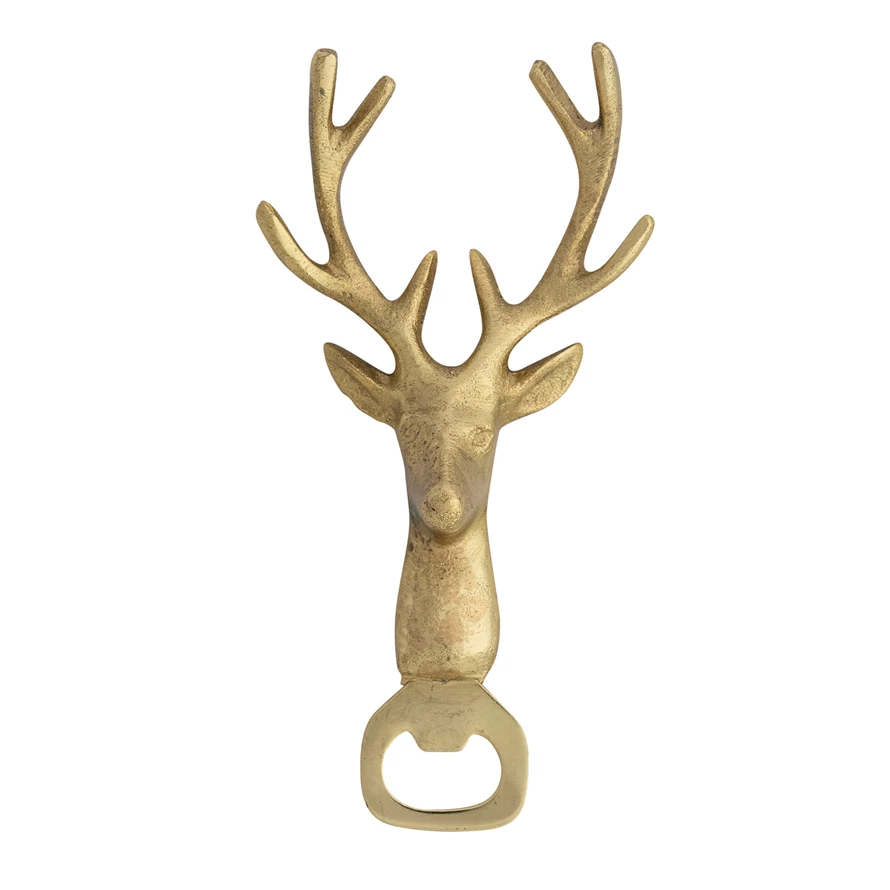Cast Aluminum Deer Head Shaped Bottle Opener, Gold Finish
