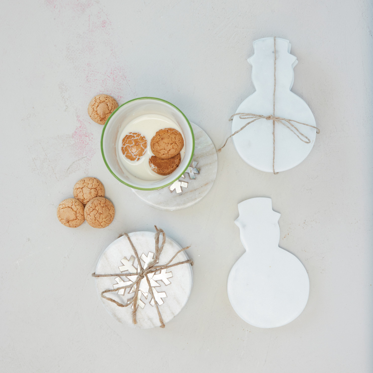 Marble Coasters with Mother of Pearl Snowflake Inlay, Set of 4 Tied with Jute