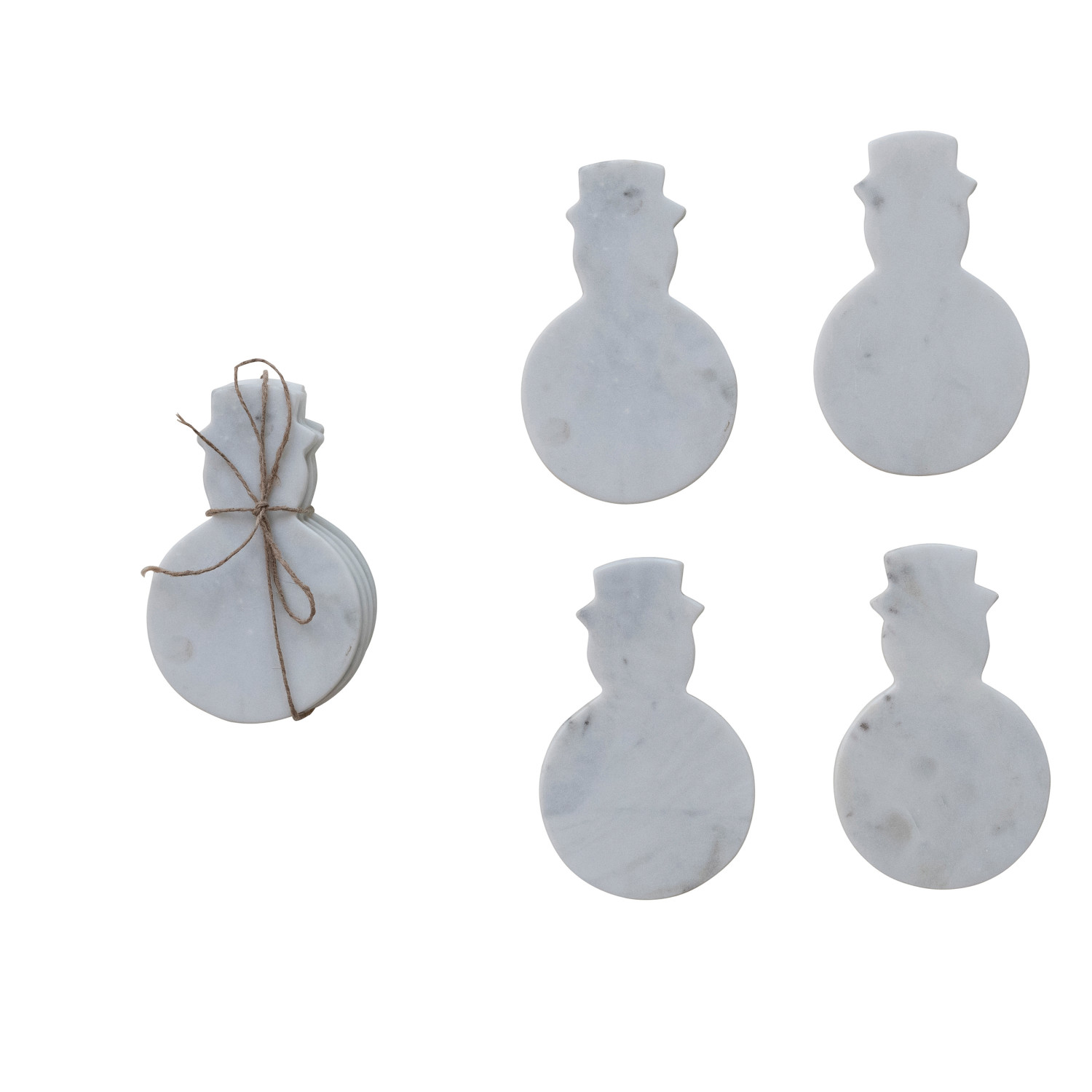 Marble Snowman Shaped Coasters, White, Set of 4 Tied with Jute