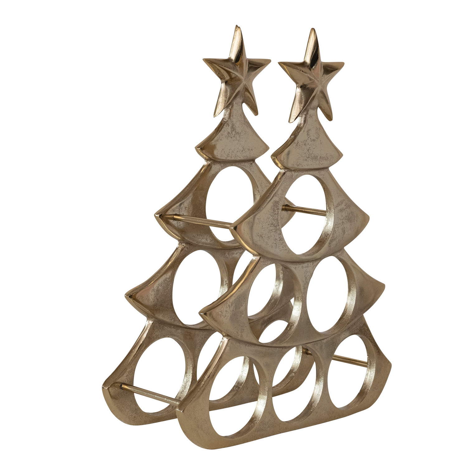 Cast Aluminum Tree Shaped Bottle Holder with Star, Gold Finish (Holds 6 Bottles)