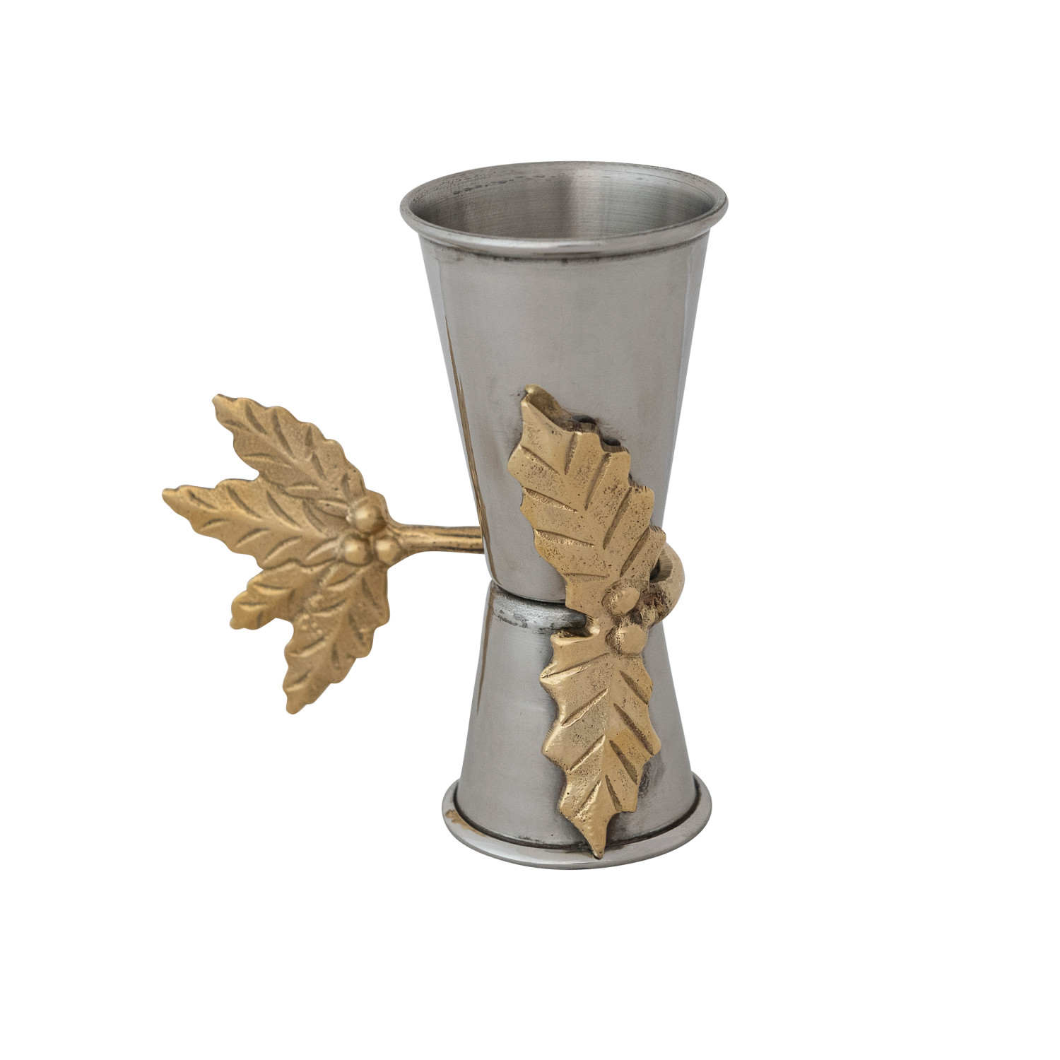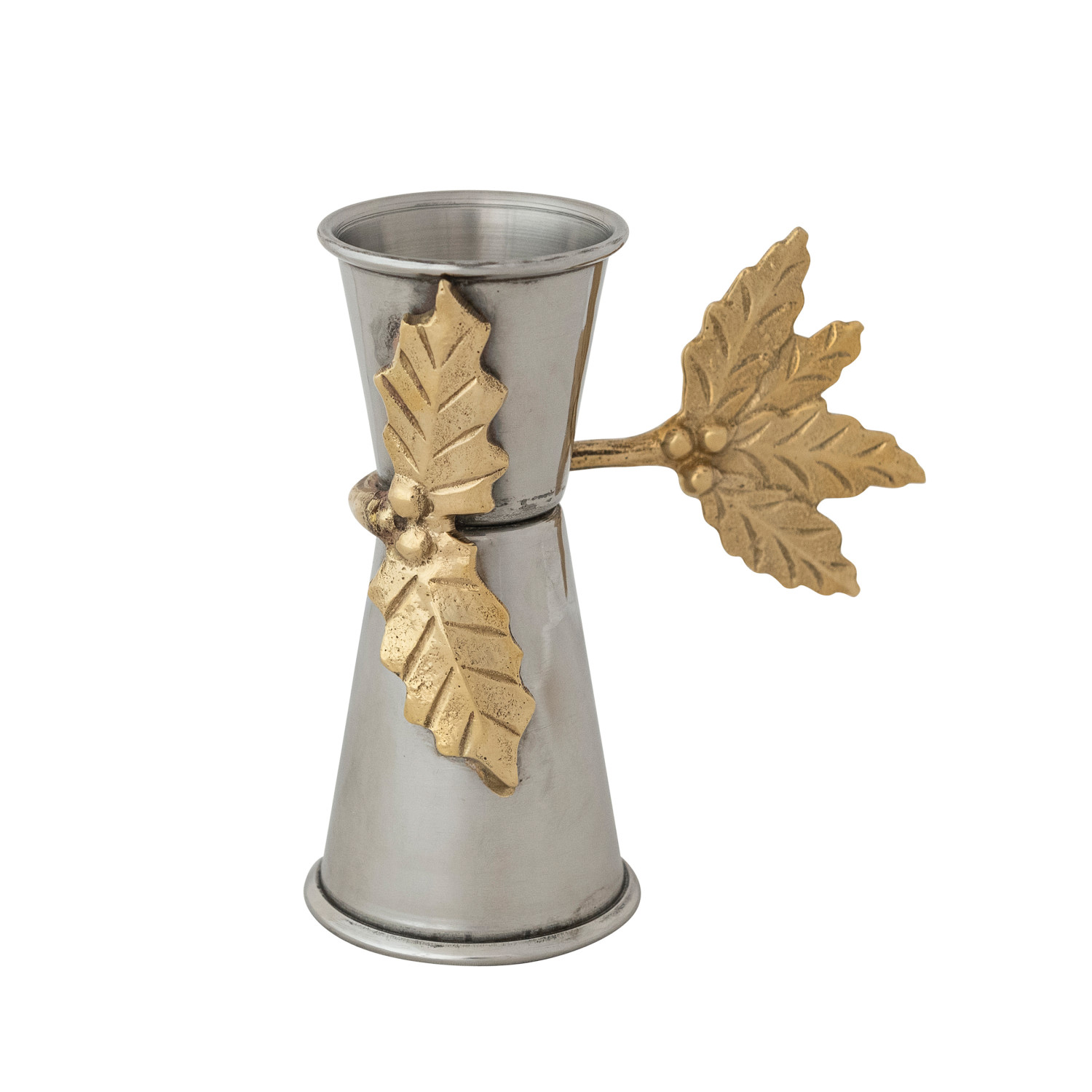 Stainless Steel Jigger with Brass Holly Leaves & Berries Shaped Handle
