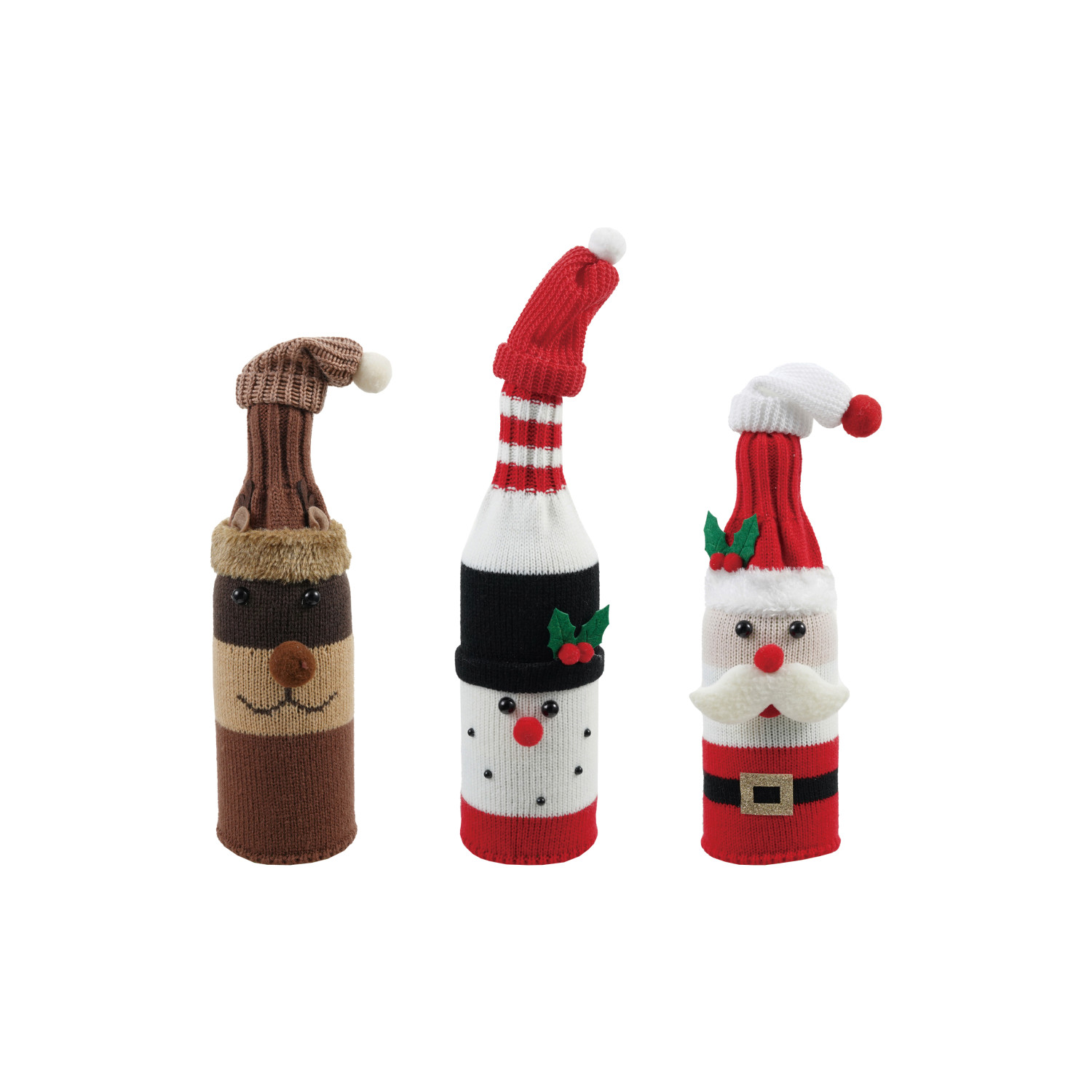 Catalog Name: 4-1/4"W x 11"H Fabric Holiday Icon Bottle Cover, Multi Color, 3 Styles