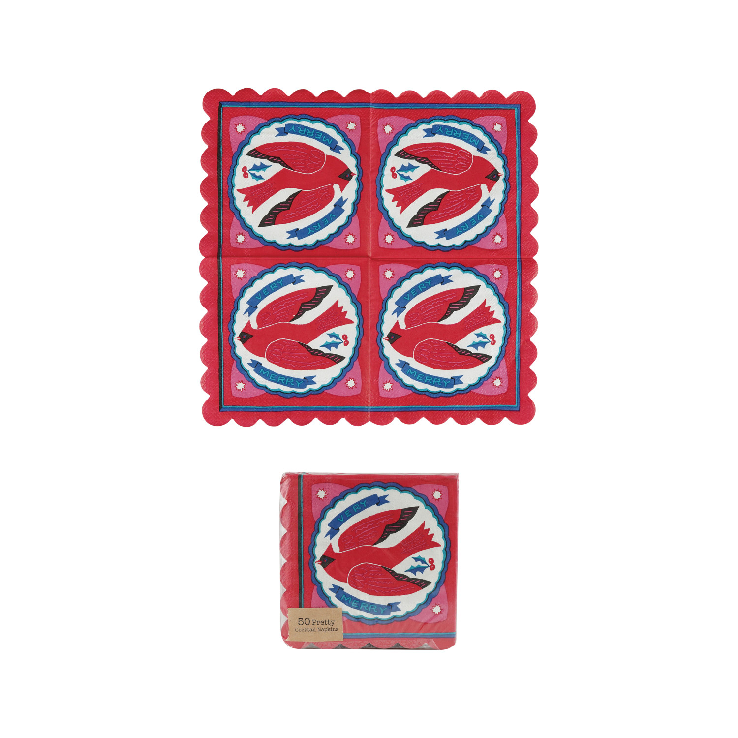 Paper Scalloped Napkins with Cardinal (Contains 50 Folded Pieces) ©