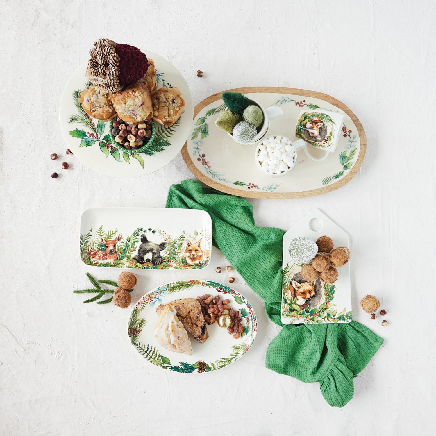 Stoneware Cheese/Serving Board with Fox, Seasonal Botanicals & Handle ©