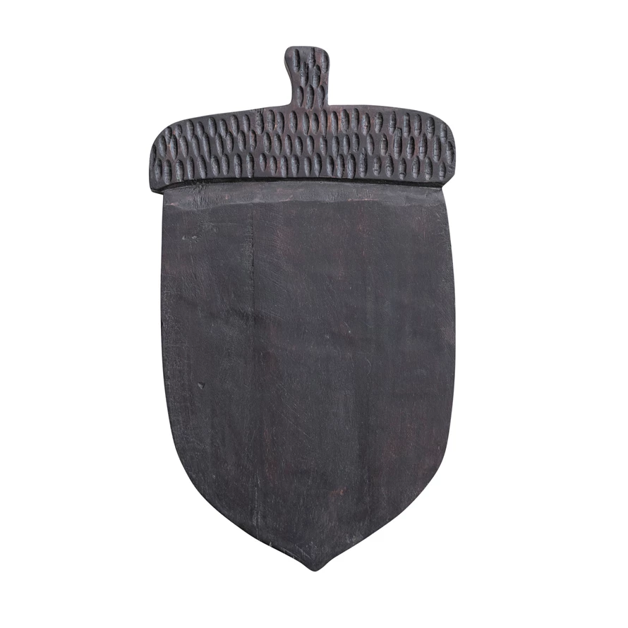 Hand-Carved Mango Wood Acorn Shaped Cheese/Serving Board, Espresso Finish