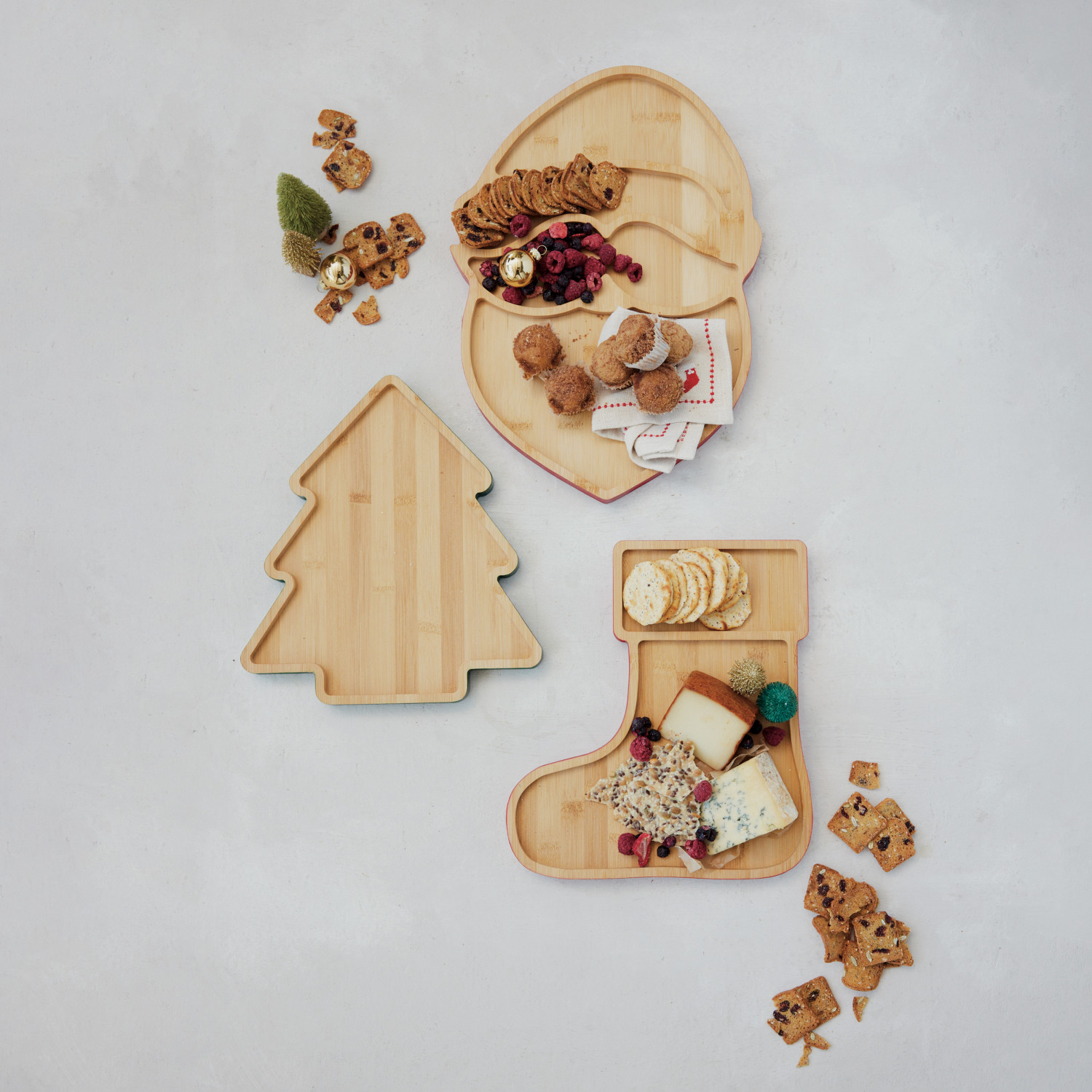 Catalog Name: 10-1/2"W x 11-3/4"H Bamboo Tree Shaped Cheese/Serving Board w/ Colored Edge, Natural & Green