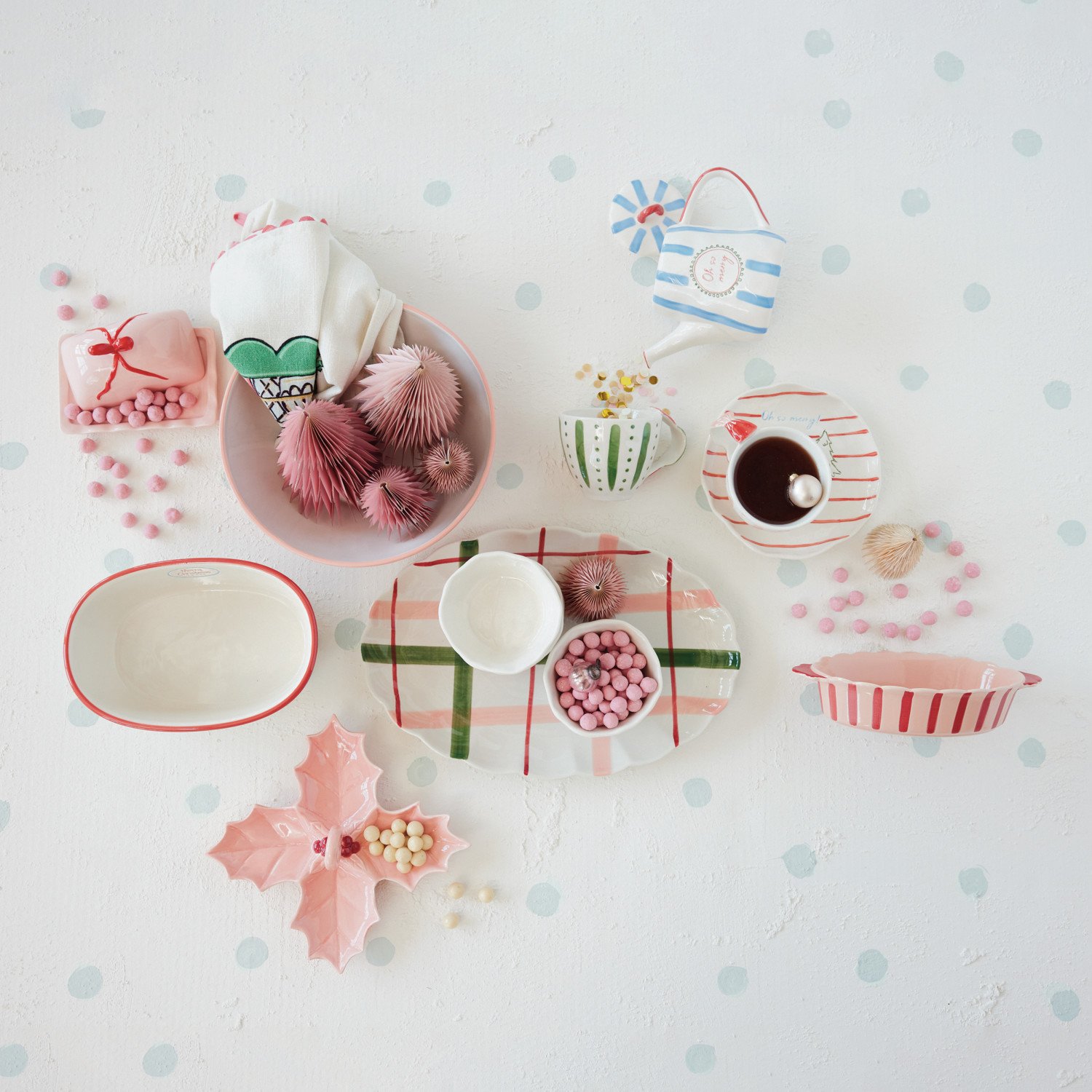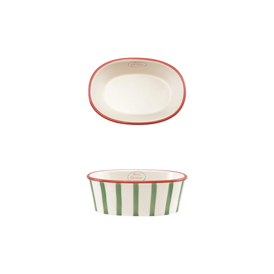 2 Quart Oval Stoneware Striped Baker "Merry Christmas"