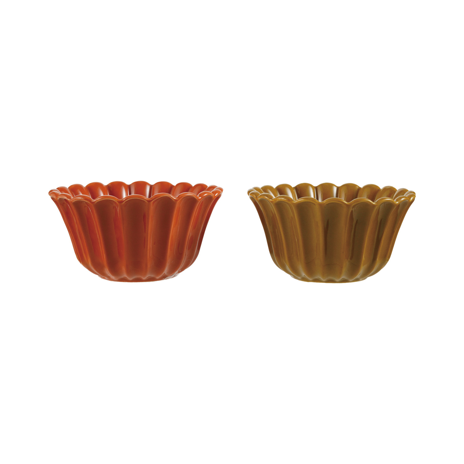 Catalog Name: 5" Round Stoneware Pleated Scalloped Bowl, 2 Colors