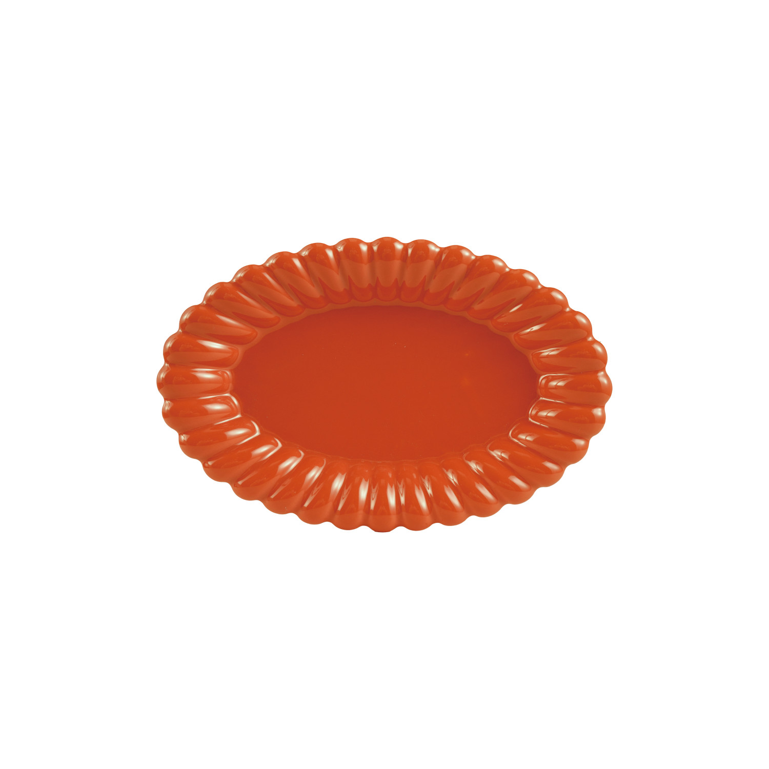 Catalog Name: 11-1/2"L x 7-1/2"W Oval Stoneware Scalloped Platter, Orange Color