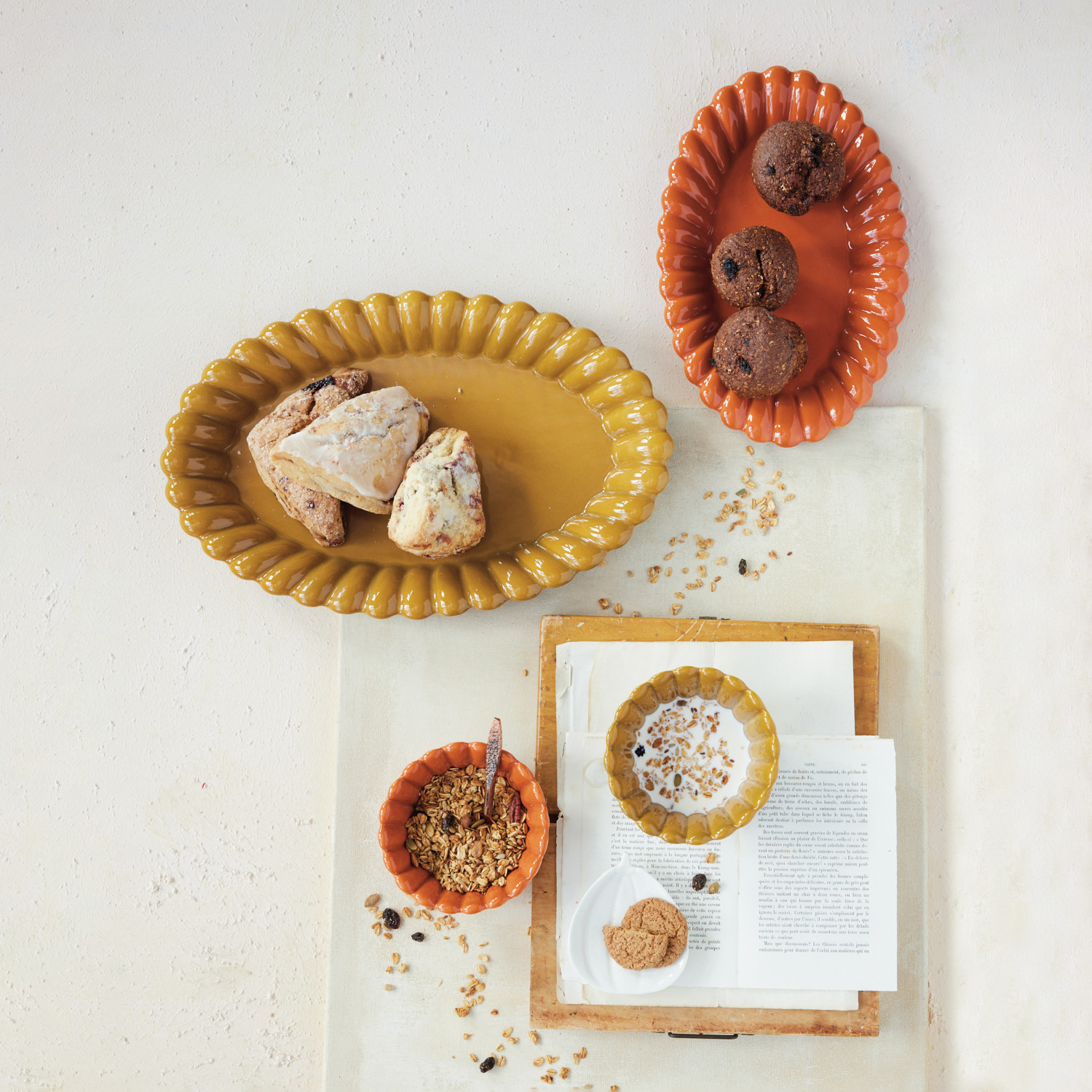 Stoneware Scalloped Platter, Orange Color