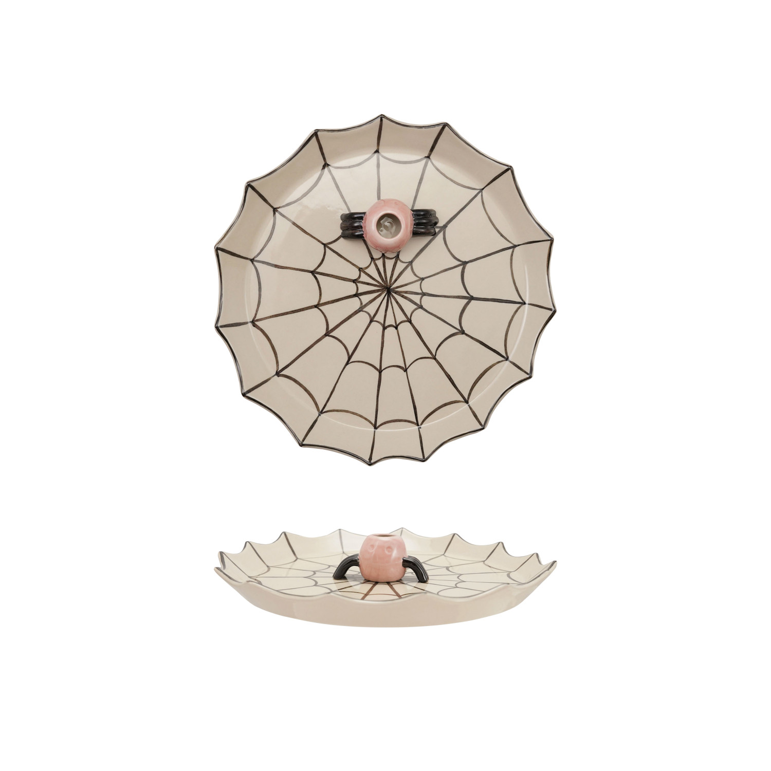 Stoneware Spider Web Shaped Platter with Toothpick Holder, Set of 2 ©
