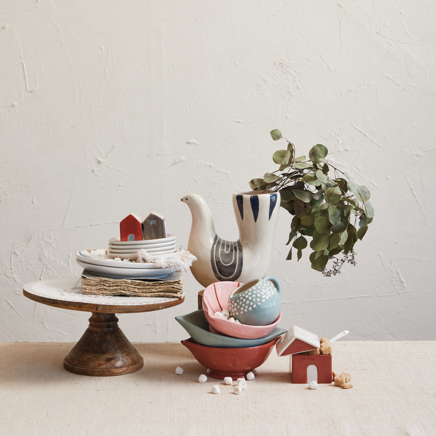 Catalog Name: 8" Round Stoneware Plate w/ Dove/Ornament Pattern, Multi Color, 2 Styles